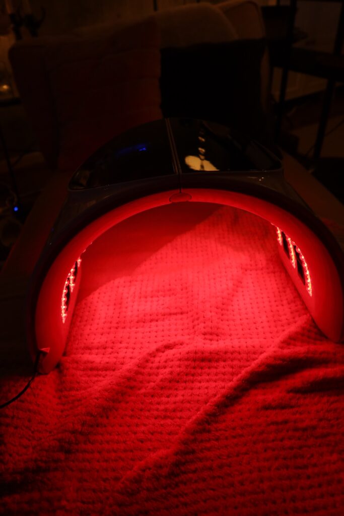 Så nu är det såhär ni hittar mig, liggande i den här maskinen. Tar 15 min. Behagligt och när jag kört den i ansiktet så känns det som att huden vaknar till liv. Det kryper lite i den och man känner att nu jäklar gick den in på djupet och väckte något. Jag ÄLSKAR den! Superlätt att lyfta, sen är det ju rätt behagligt och ligga i den här. Har också börjat behandla min mage (har ju en hel del bristningar sen jag väntade barnen). Ska bli så spännande att köra den här nu. Ska den behandla min dygnsrytm också så är ingen gladare än jag.