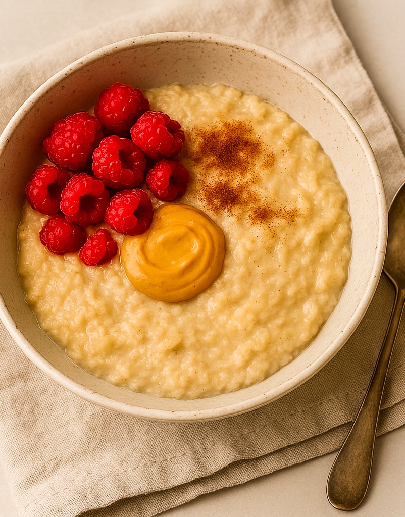 Gör en krämig havregrynsgröt med mandelmjölk, toppa med frusna hallon, en klick nötsmör och lite kanel. Rör i en skopa proteinpulver på slutet – mättande, gott och klimakteriesmart!