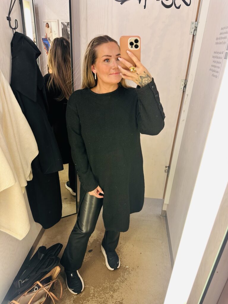 Just nu rabatt på fejkskinnbyxorna och tunikan! Örhängena är ett fynd och finns i flera färger. Byxorna är så användbara till mycket. Till vardags & till fest. Tunikan finns också i flera färger. Jag har den i grå & svart.