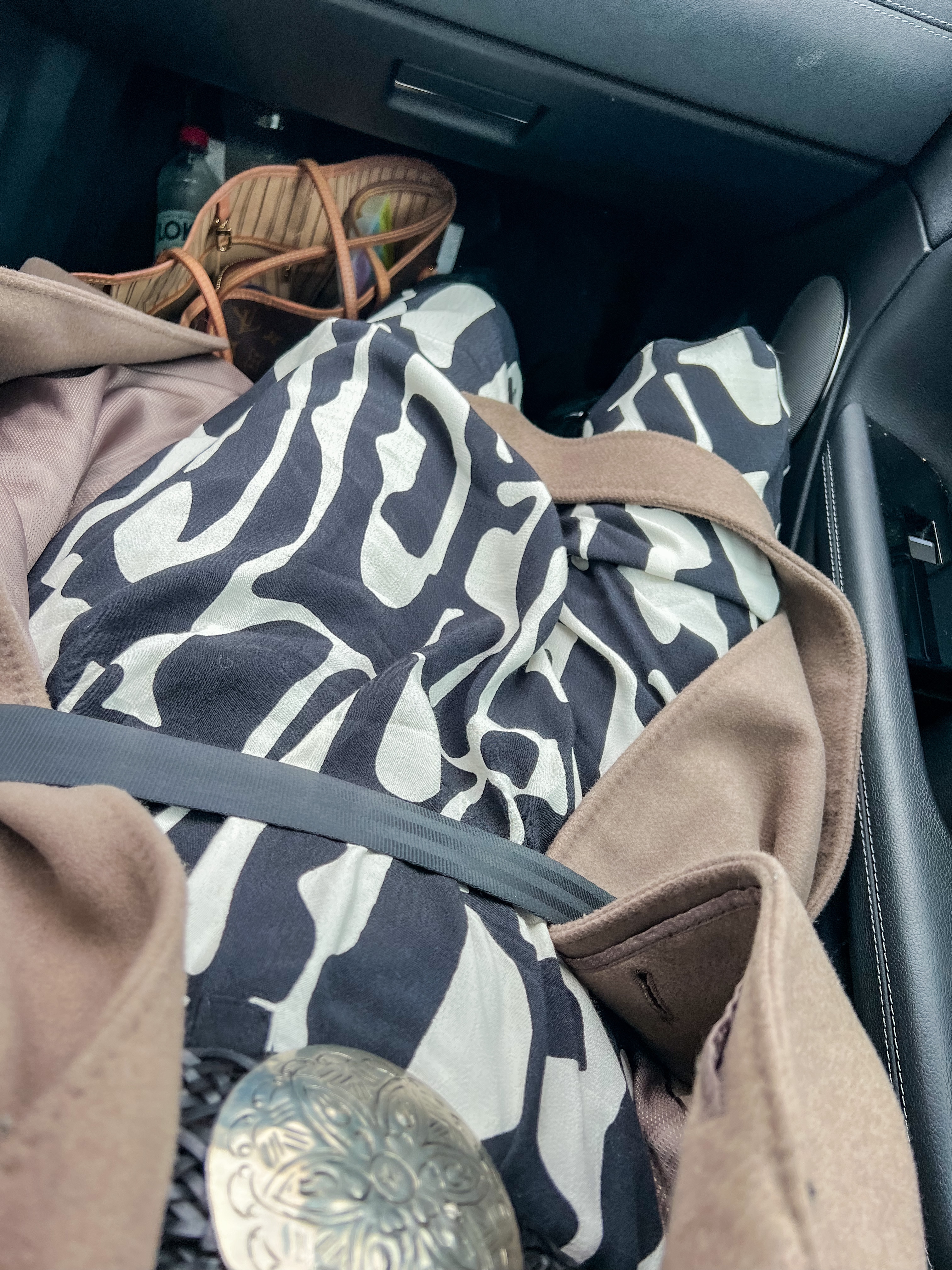 Lite svårt att ta bild men jag sitter i bilen nu och fick en knackig bild på mina kläder idag. Klänning från Zara, köpt i Spanien.