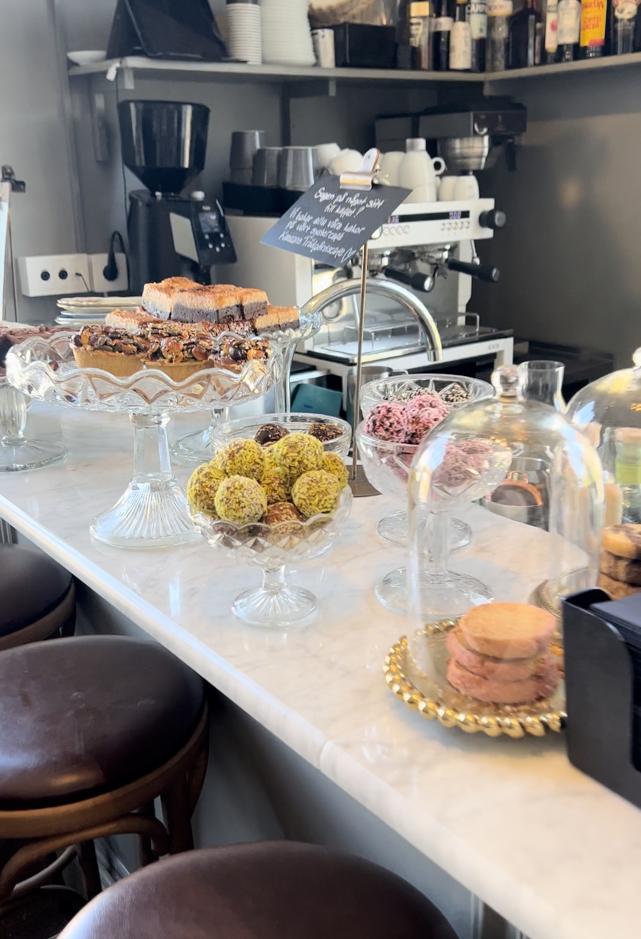 Igår, när jag hade en bra dag, så fikade vi på Fanny Udde. Så mysigt ställe ute i Sickla. Solen gassade och jag kunde sitta med en stund och dricka kaffe och äta chokladboll på chokladbollens dag. Lyx lyx lyx om du frågar mig.