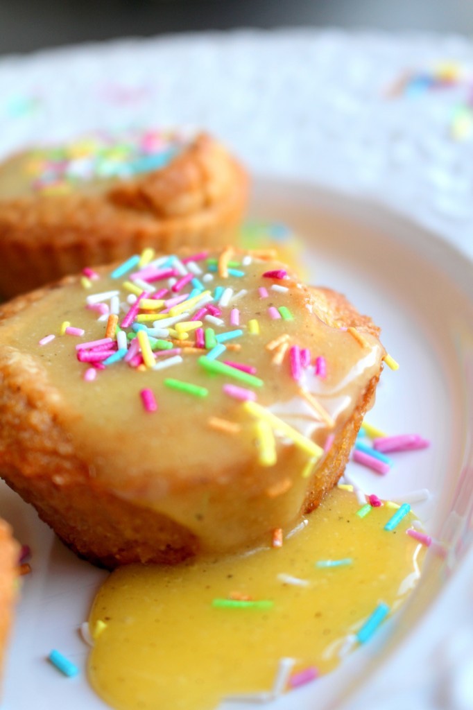 6) Häll på glasyr på varje muffins. Det får gärna rinna lite på sidorna, det är bara göttigt med lite sånt. Låt glasyren stelna till lite. Ha till sist på lite strössel. Dessa muffins passar ypperligt på påskbordet eller varför inte barnkalaset? Eller bara för att de är så JÄKLA goda! 🙂