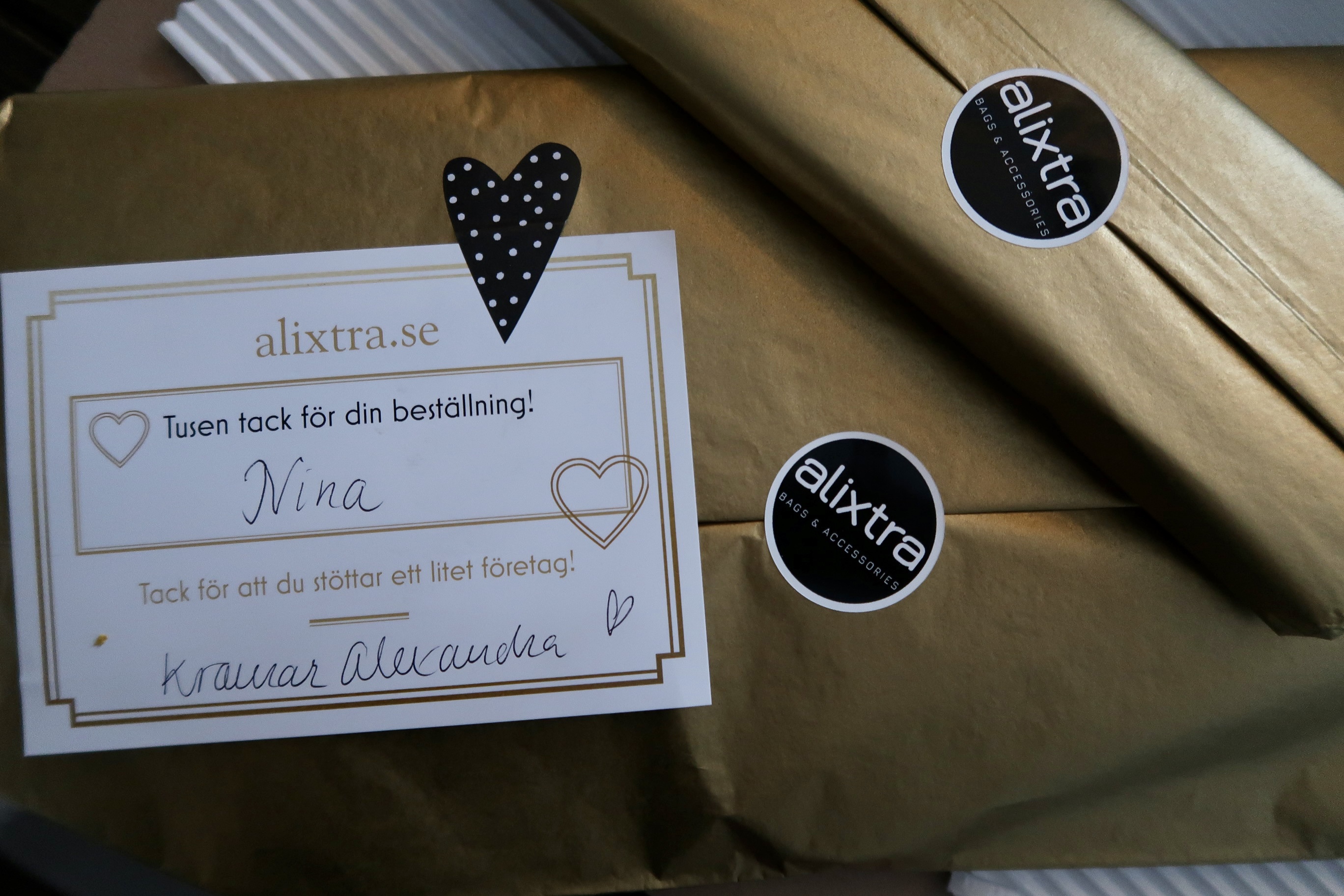 Apropå gynna! Beställde lite härliga presentartiklar och annat från en nätbutik som heter Alixtra. Fick tips av kontot ”fix & trix” om butiken så jag köpte dessa underbara ”presentväskor”.