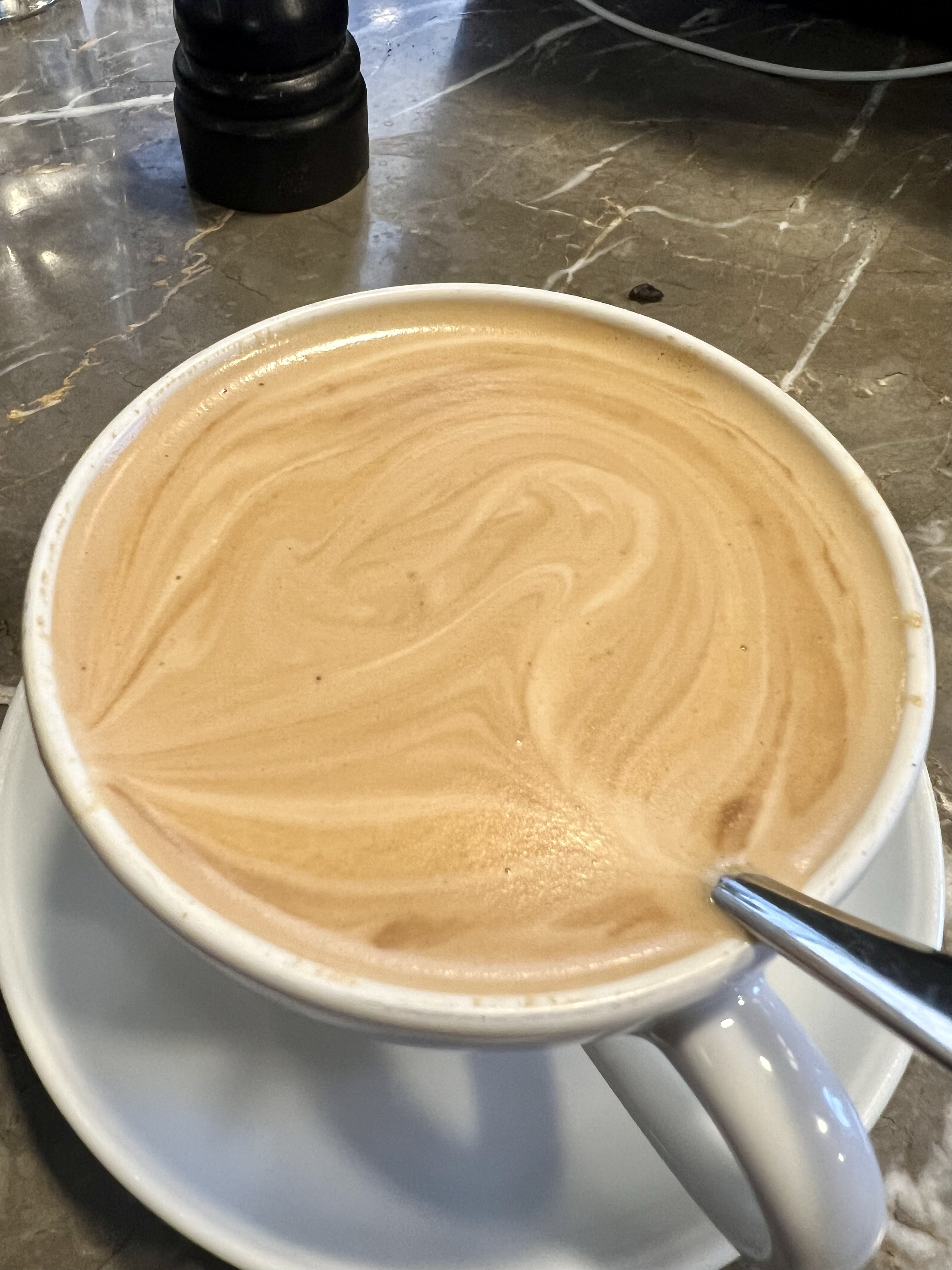 Efter frisörbesöket mötte vi upp ”Mellan” och så åt vi en lunch på Paulas i Östermalmshallen. Jag var så galet hungrig så jag hann inte ens fota maten men OJ vad gott det var. Jag åt en grönkålssallad med kyckling och örtdressing. Du MÅSTE gå dit och testa den någon gång, Ceasersalladen som ”Mellan” åt var också magiskt god! Så fräscha och så mycket goda smaker. Kaffet (koffeinfritt för mig) var också en höjdare, ja men 10 poäng av 10 från oss.