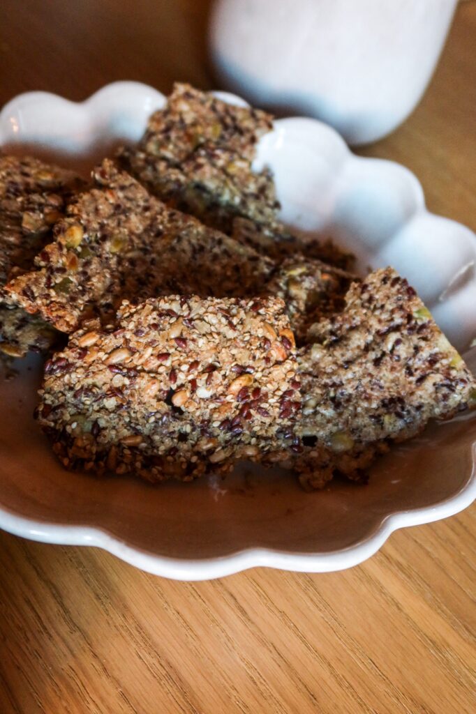 När den stått klart i kylen (minst 4 timmar) så plattar du ut den på 3 bakplåtar. Sedan är det bara att grädda. Detta blir så smaskigt och är mina absoluta favorit när det kommer till fröknäcke just nu.