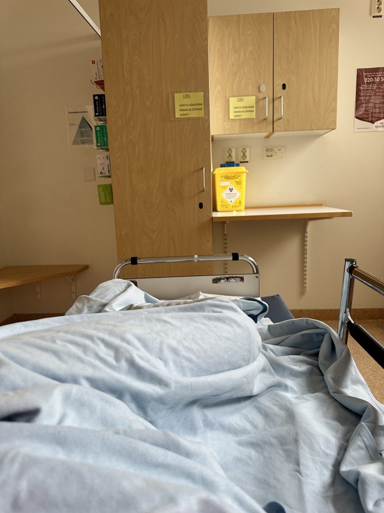 Tony baxade ut mig i bilen och sen iväg till akuten. Fick lägga mig direkt när jag kom in. En magisk grej är att smärtan är hanterbar om jag ligger på min högra sida med en kudde mellan knäna. Tack & lov. Någon sådan position har jag inte haft vid de andra 2 tillfällena, då har ALLT bara gjort ont. Det har funkat att ligga på magen men det har fortfarande varit oerhört smärtsamt. Så något positivt ändå.. 😊