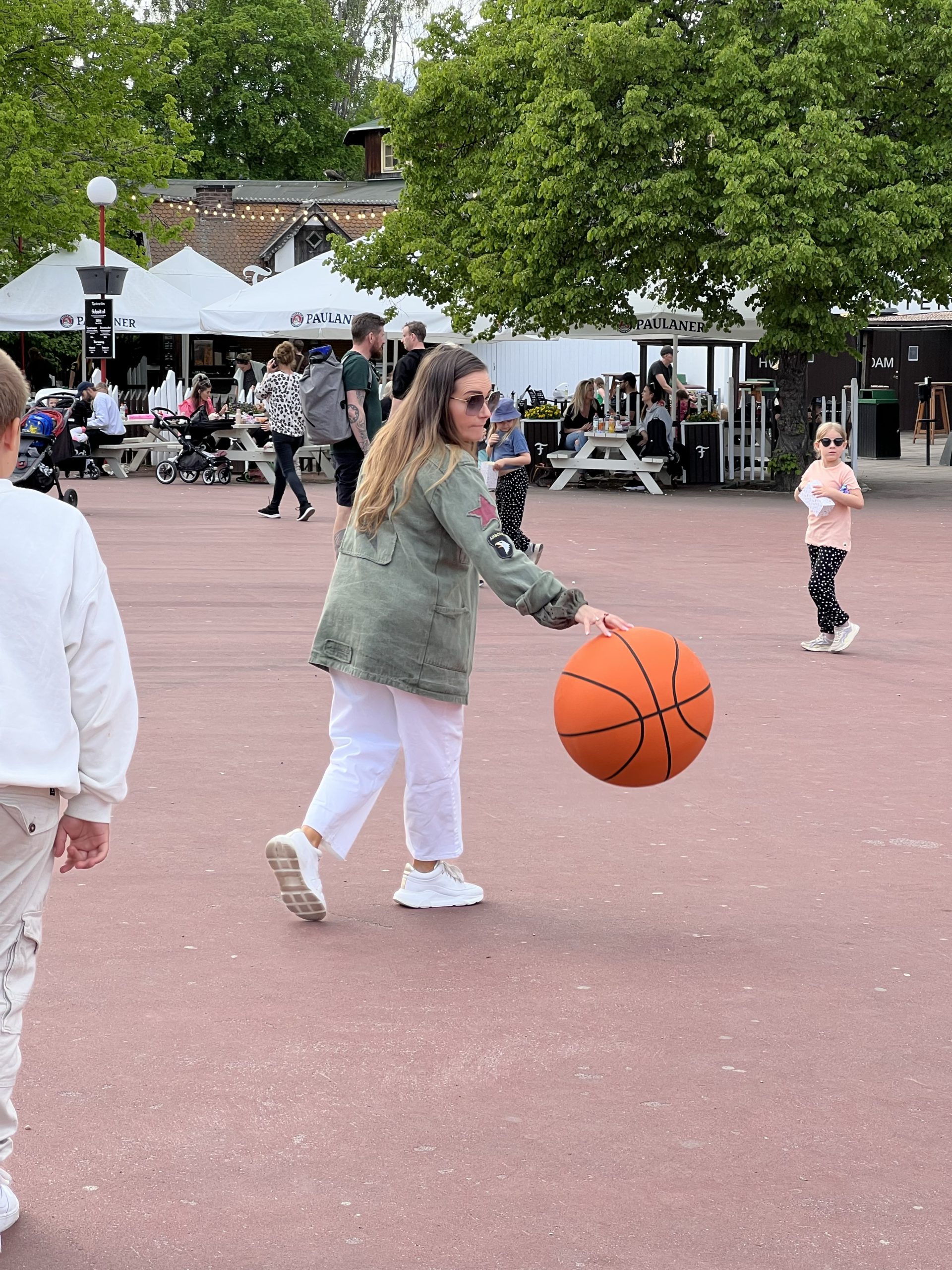 Den här mamman fick testa på en av bollarna också, underskattat att bolla med en riktigt studsig basketboll. 😀