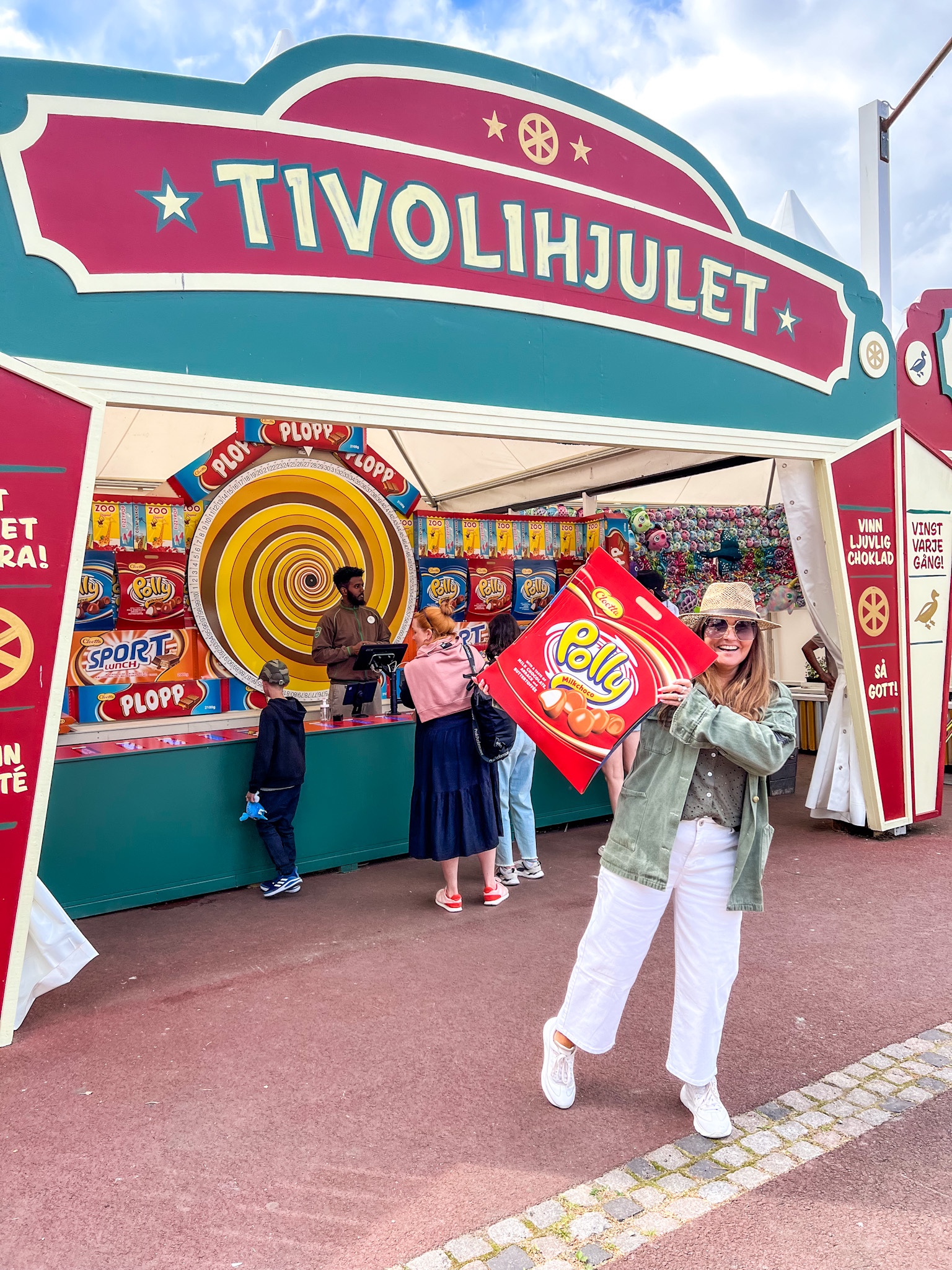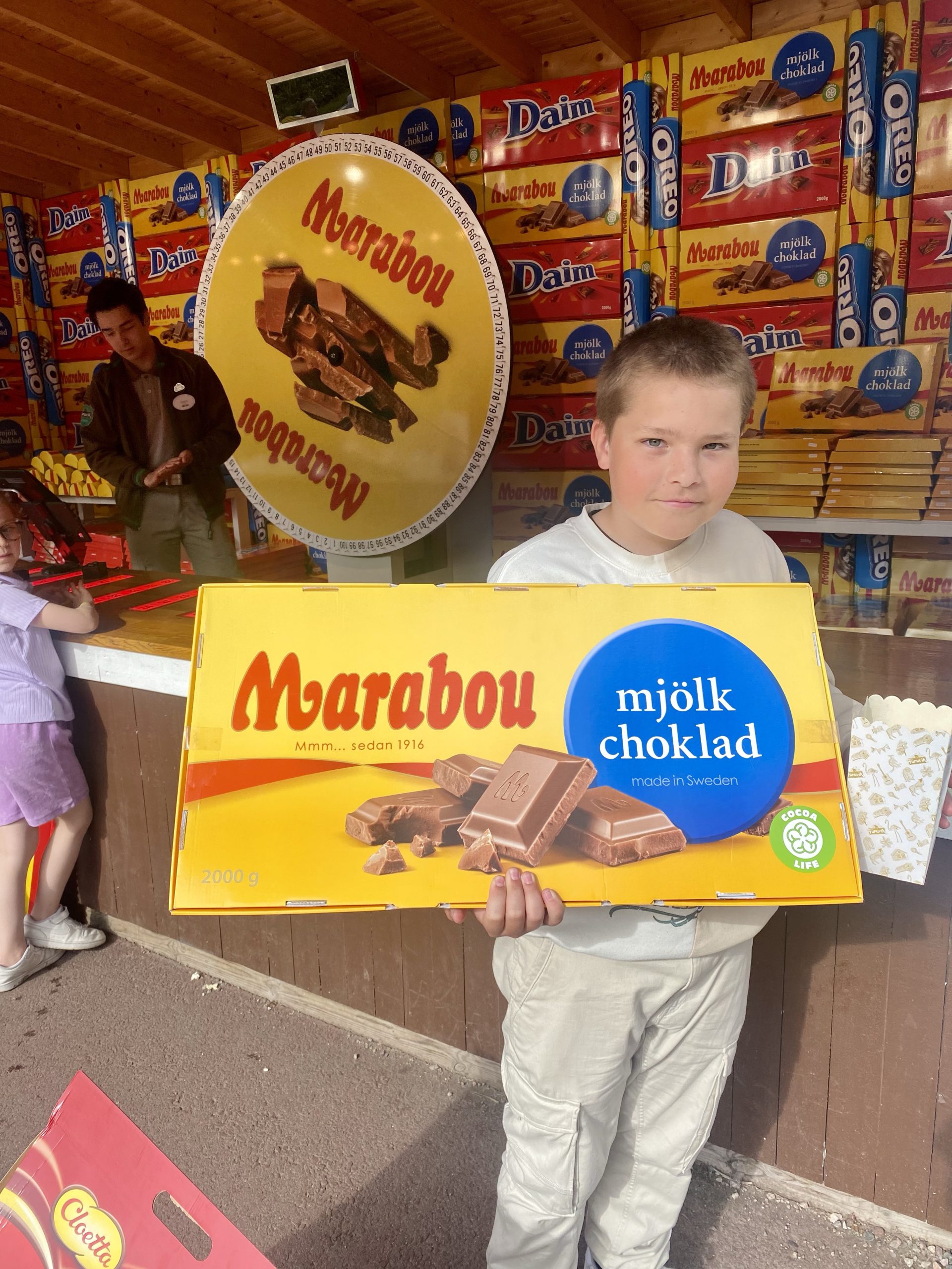 Vi hade rätt stora framgångar när det kommer till chokladhjul och basket. Två bollar och inte bara en polly utan även en marabou fick följa med oss hem. Kasta boll på burkar gav oss dinosaurier också. Så skrindan kom till användning kan man säga. 😀