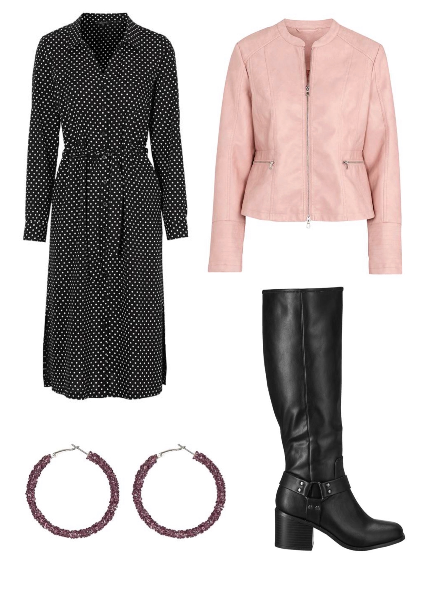 Rosa tröja // Treggings i skinnimitation // Stövlett // Kappa // Sjal
