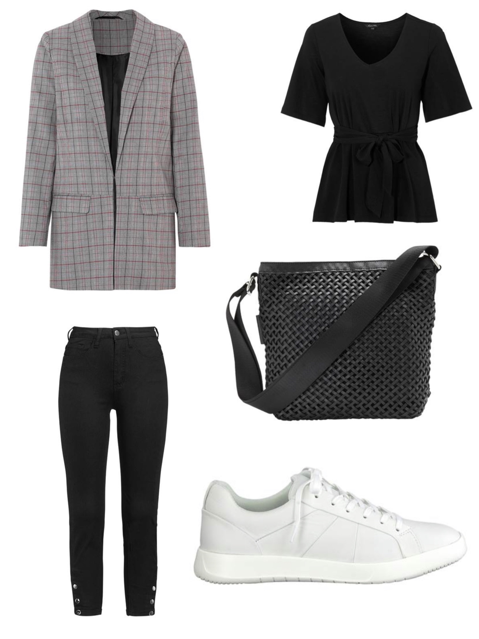 Rutig kavaj // Byxa // Topp // Sneakers // Väska
