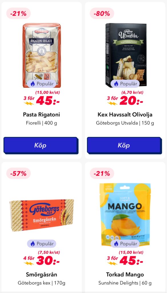 Den här sidan måste du kolla in varje gång du handlar! Här dyker de bästa fynden upp först, och mycket tar slut snabbt.