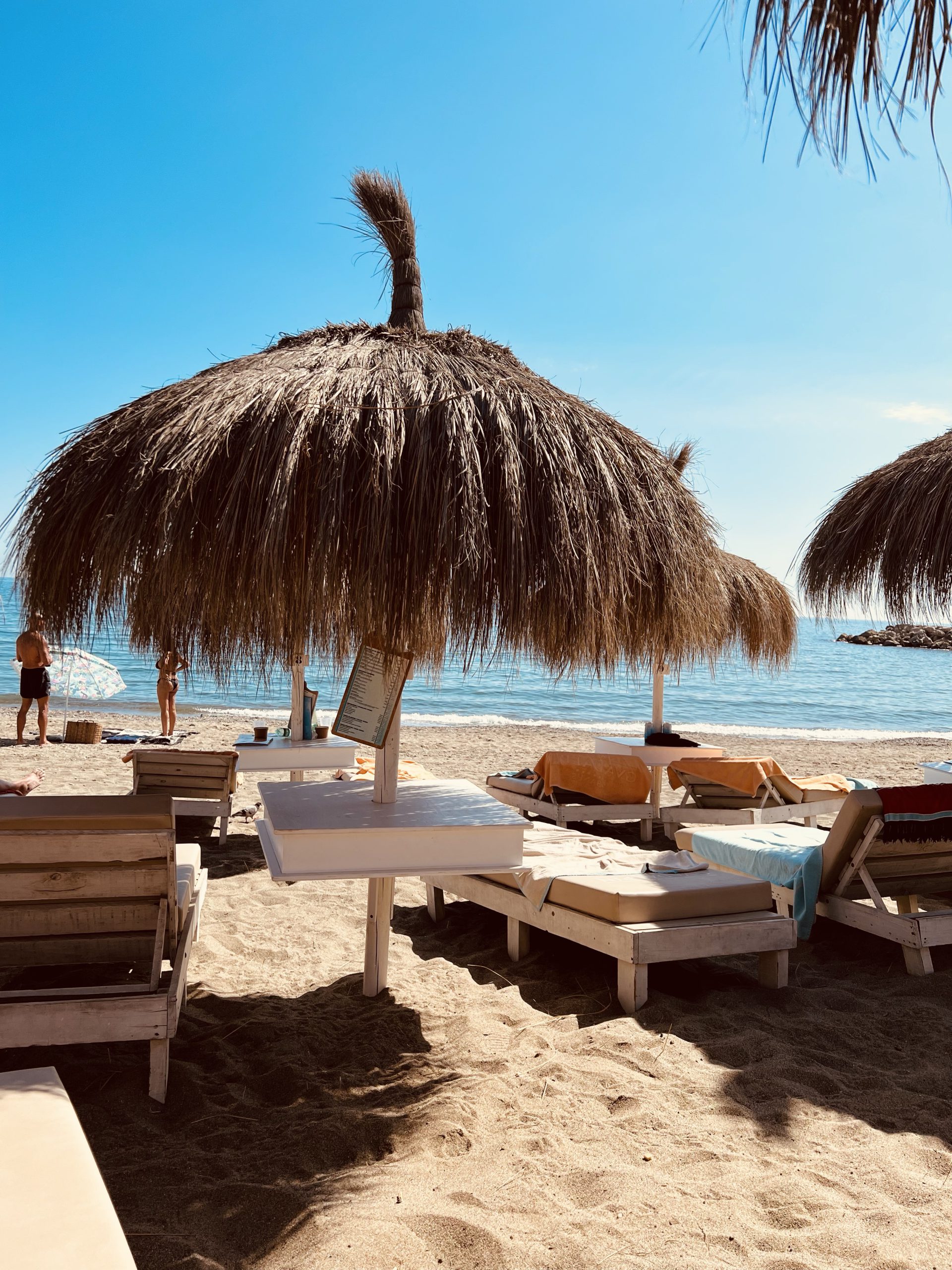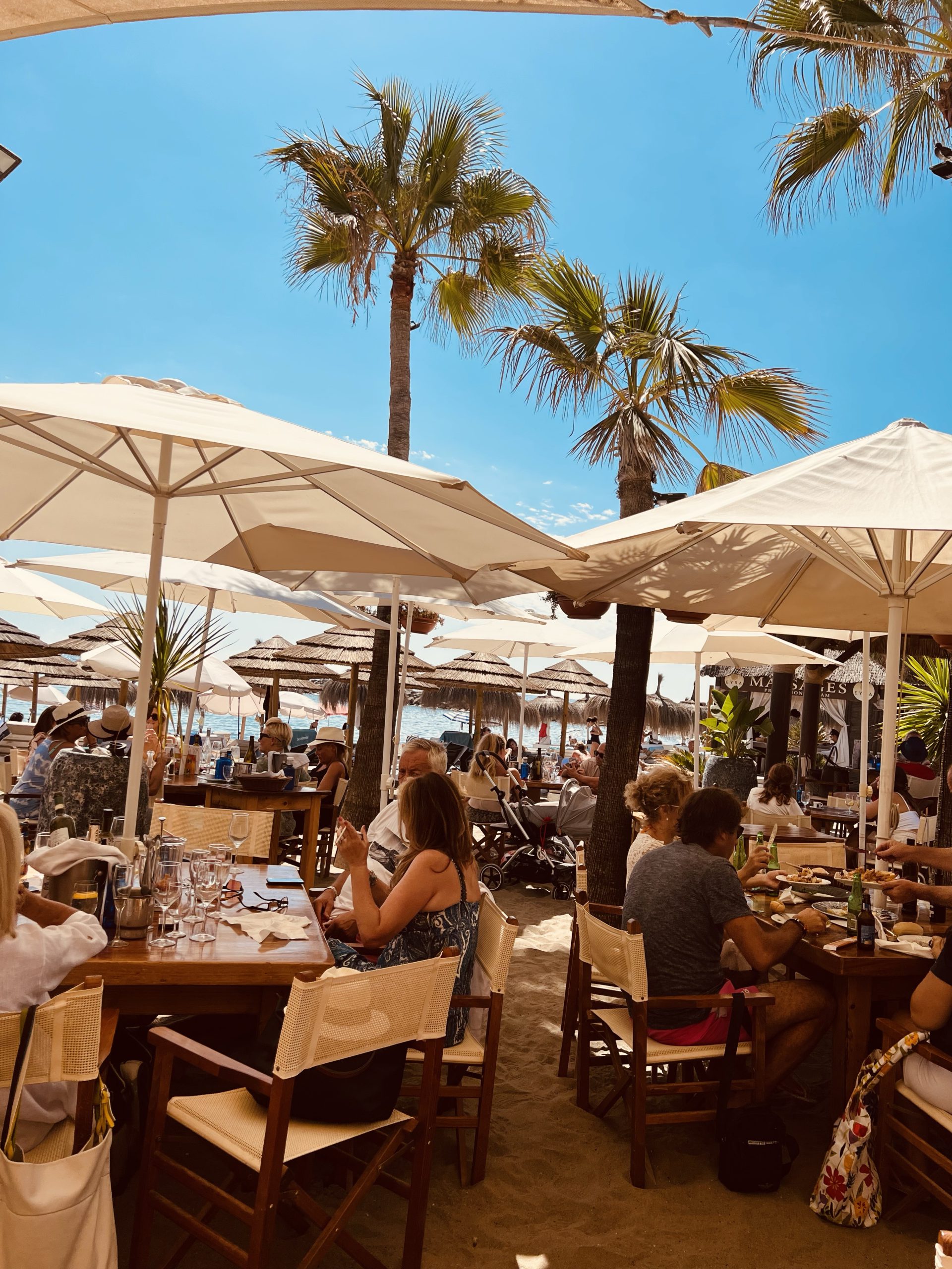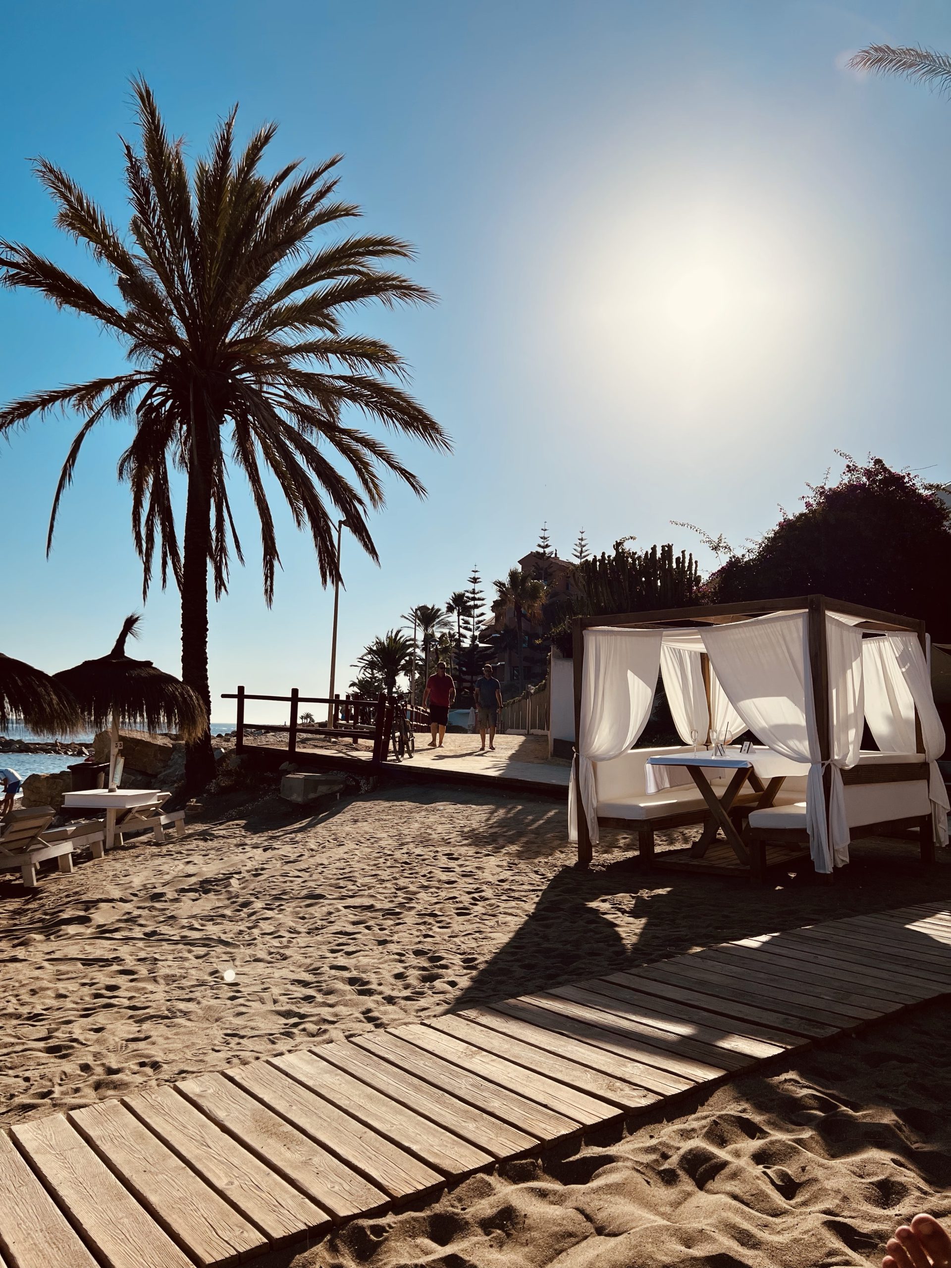 Eftermiddagen i lördags bestämde vi oss för att åka till Mistrals Beachclub. Den ligger bakom detta lyxhotell som ligger precis på stranden. Gvadalpin Banus, 5 stjärnigt hotell där bilarna utanför står och slåss om vilken som är dyrast.