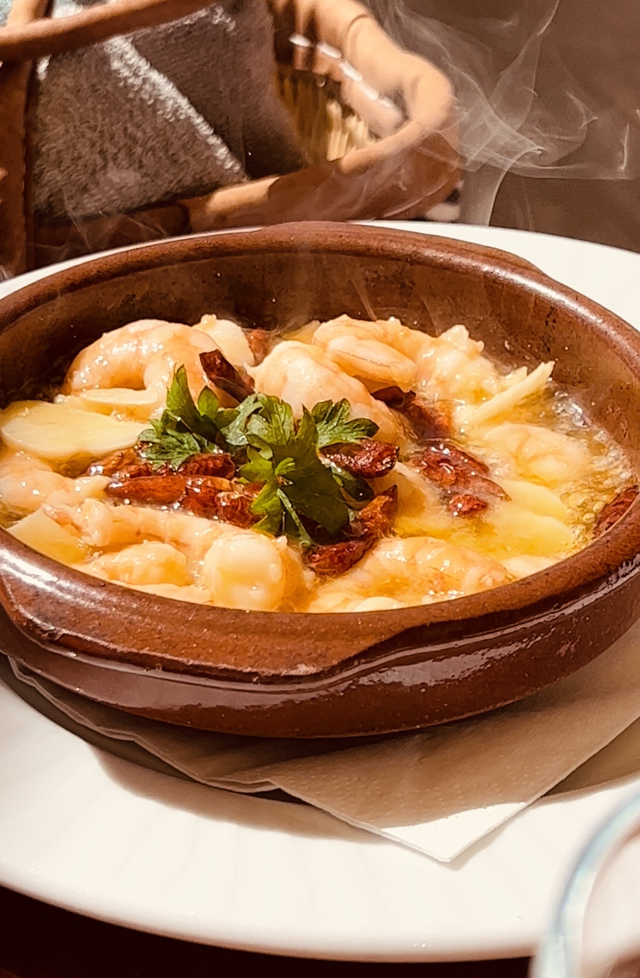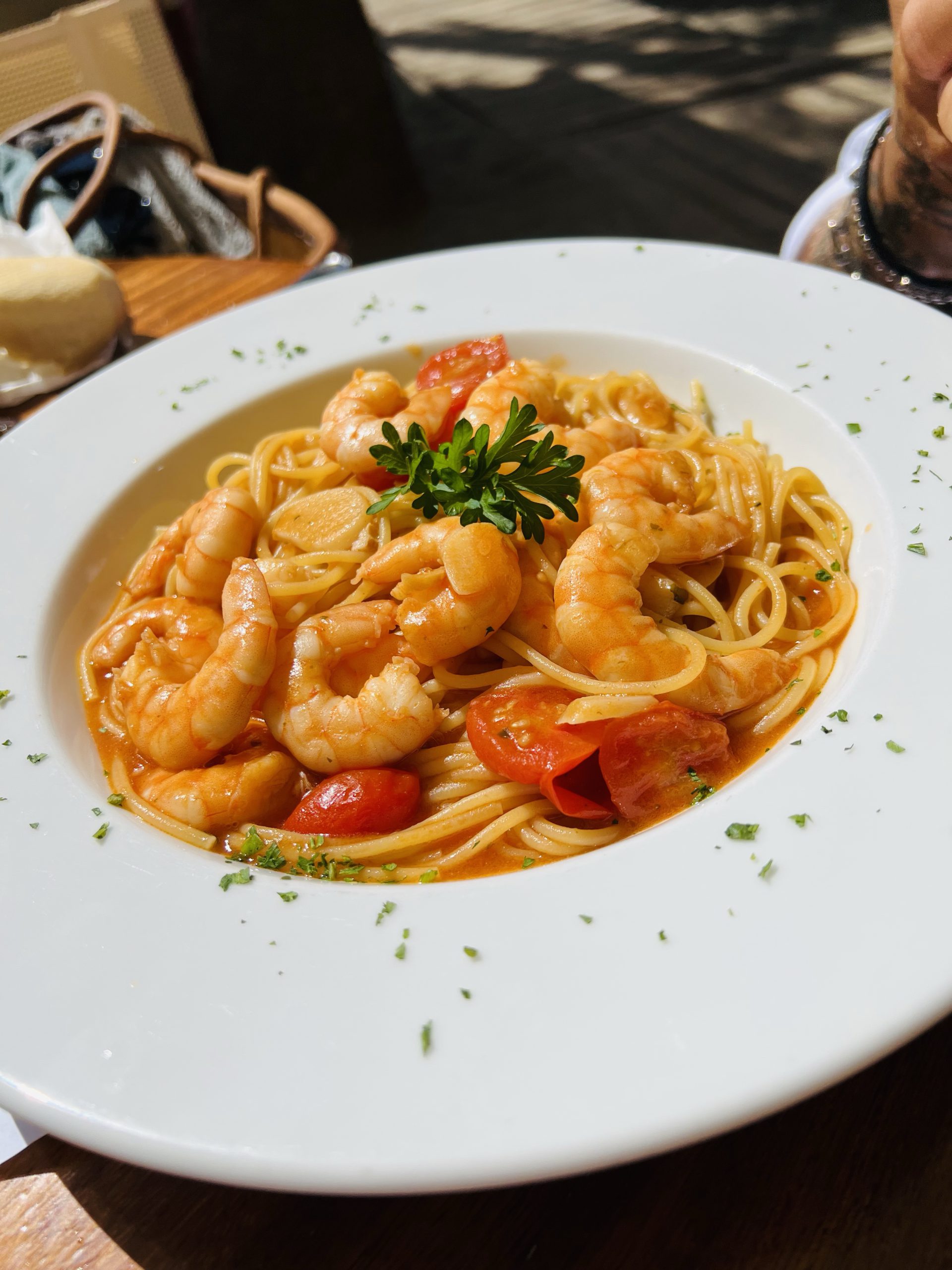 Vi tog en sen lunch på Mistral Beach restaurang där på stranden. Jag åt en Caprese sallad, Tony tog en Gambas pil pil pasta och Milo en burgare. Till förrätt delade vi på en Gambas Pil Pil. Så gott! Tony sa att det var den godaste och mest perfekt kokta pastan han någonsin ätit.