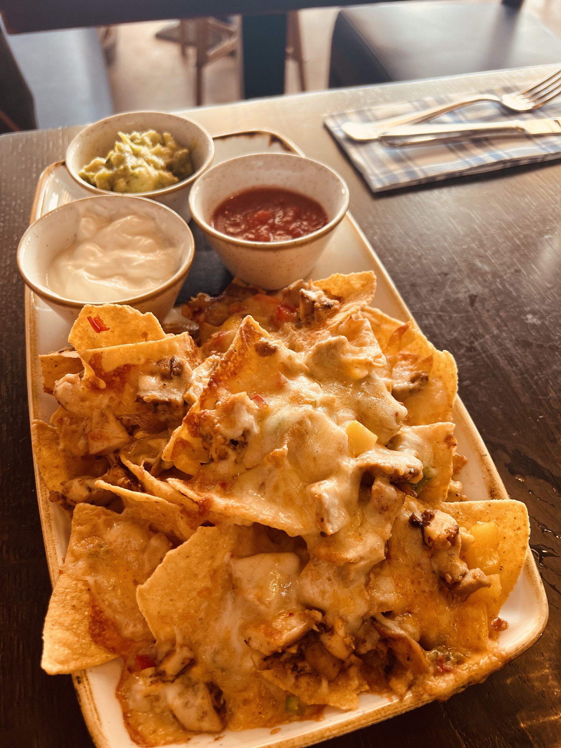 Min favorit är denna Smoked chickennachos. Egentligen en förrätt vilket ju inte verkar klokt ju. Haha, det är så enormt mycket mat. Jag orkar i alla fall inget mer.