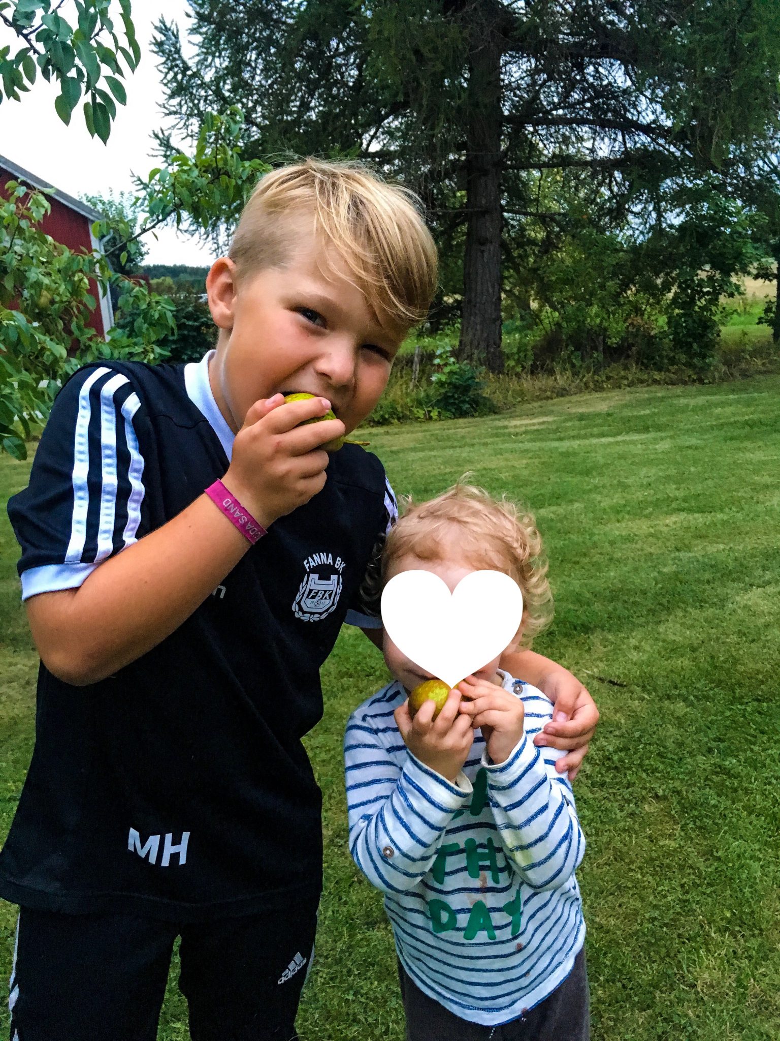 Sötisarna. Milo tog ett päron, då ville han självklart också ha det. Åh, vår lille bebis i familjen. Vad man älskar den lille fisen! ❤️