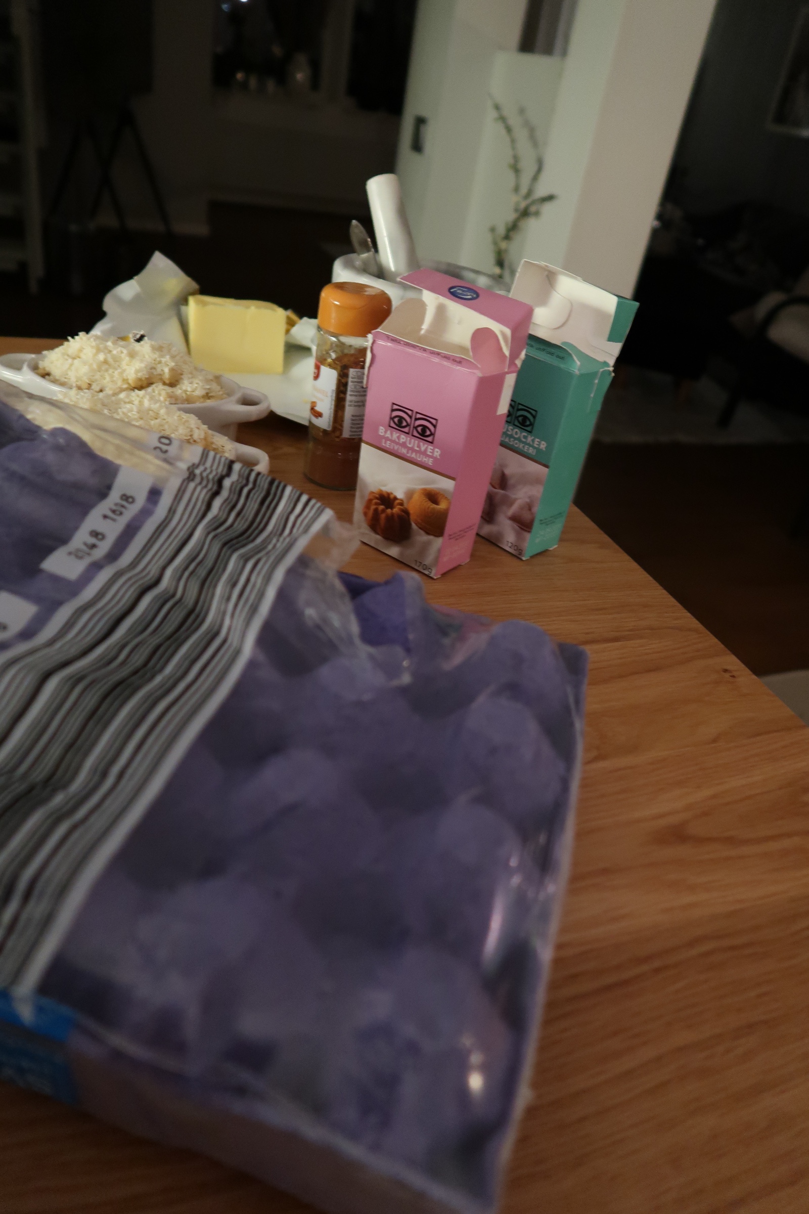 Jag är uppe sen 04 och bakar inför dagens plåtning av bakboken. Det är glamouröst här hemma i köket vill jag lova. 😂 Eller inte…. det är kanske tur att man inte blir fotograferad under tiden man gör bakverken skulle jag säga. Idag ska Vagnhild få vara med också, man kan väl inte göra en bakbok utan att hon får vara med på ett hörn tänker vi.
