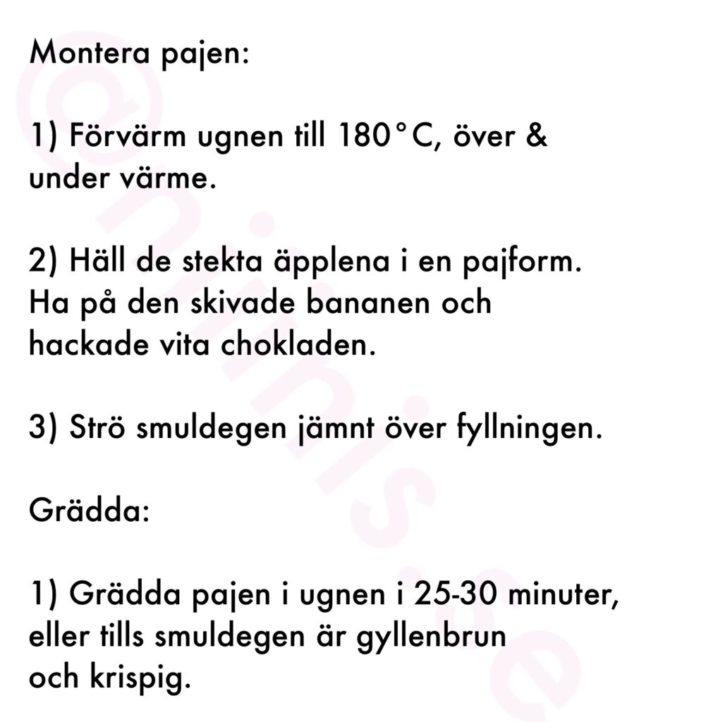 Denna äppelpaj med banan och vit choklad är perfekt för både vardagsmyset och festliga tillfällen. Älskar verkligen kombon av banan, äpple & vit choklad! Har du egna tips för att göra pajen ännu mer speciell, skriv gärna dem i kommentarsfältet.