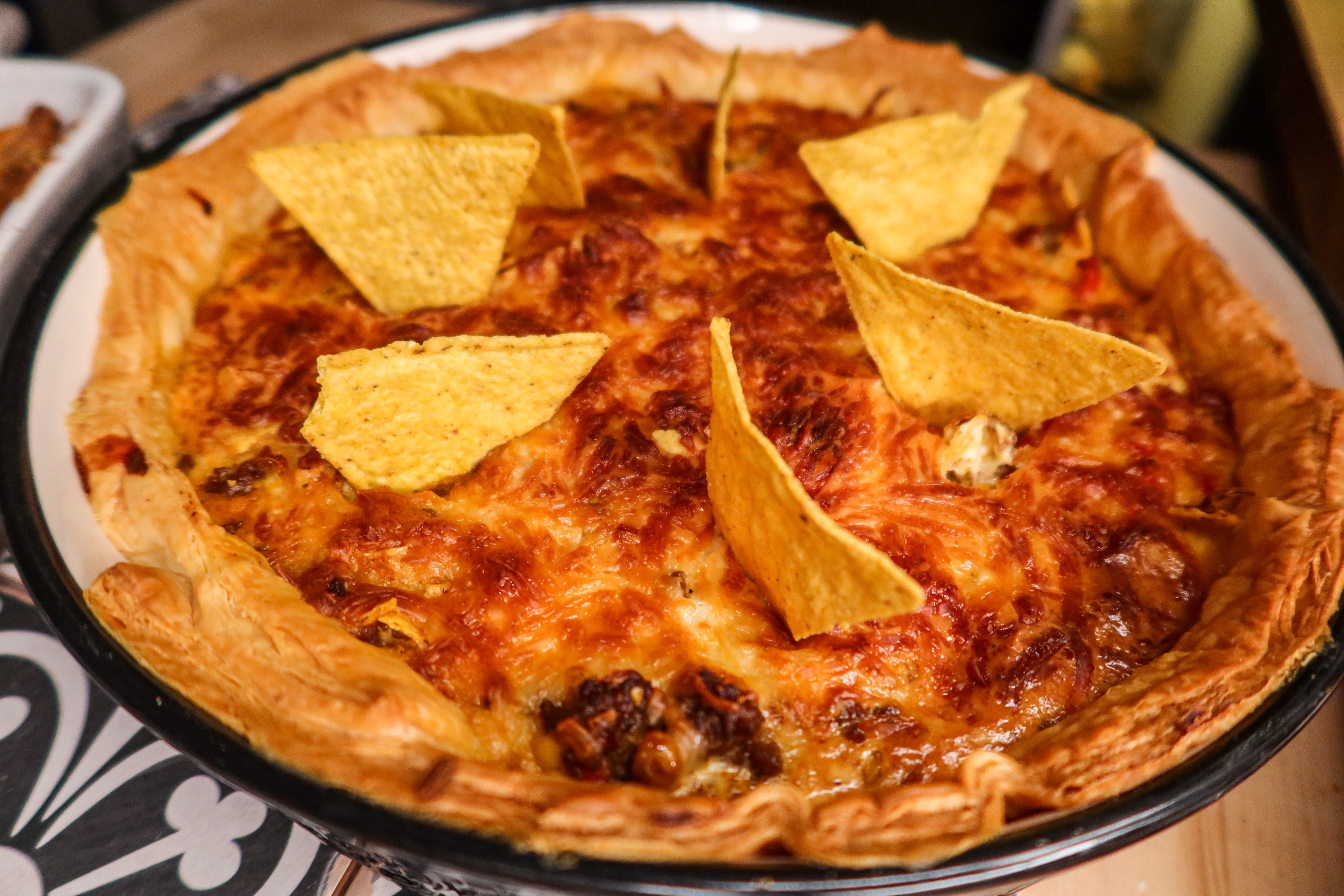 5) När du tar ut pajen sticker du i några tortillachips.