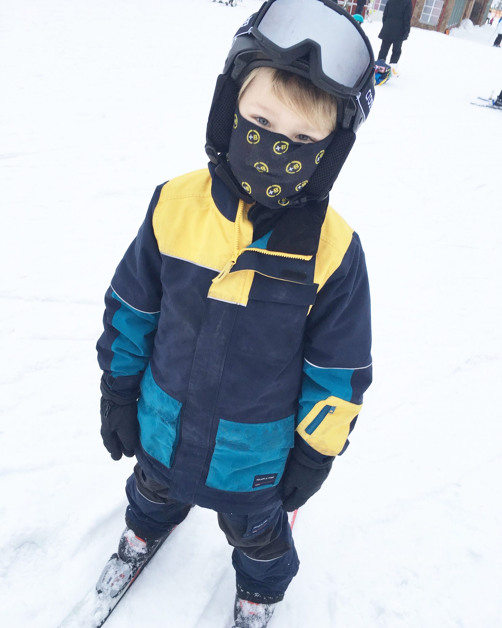 Här sitter jag i skidkläderna i soffan. Som du ser så är det inte direkt feststassen som sitter på….
