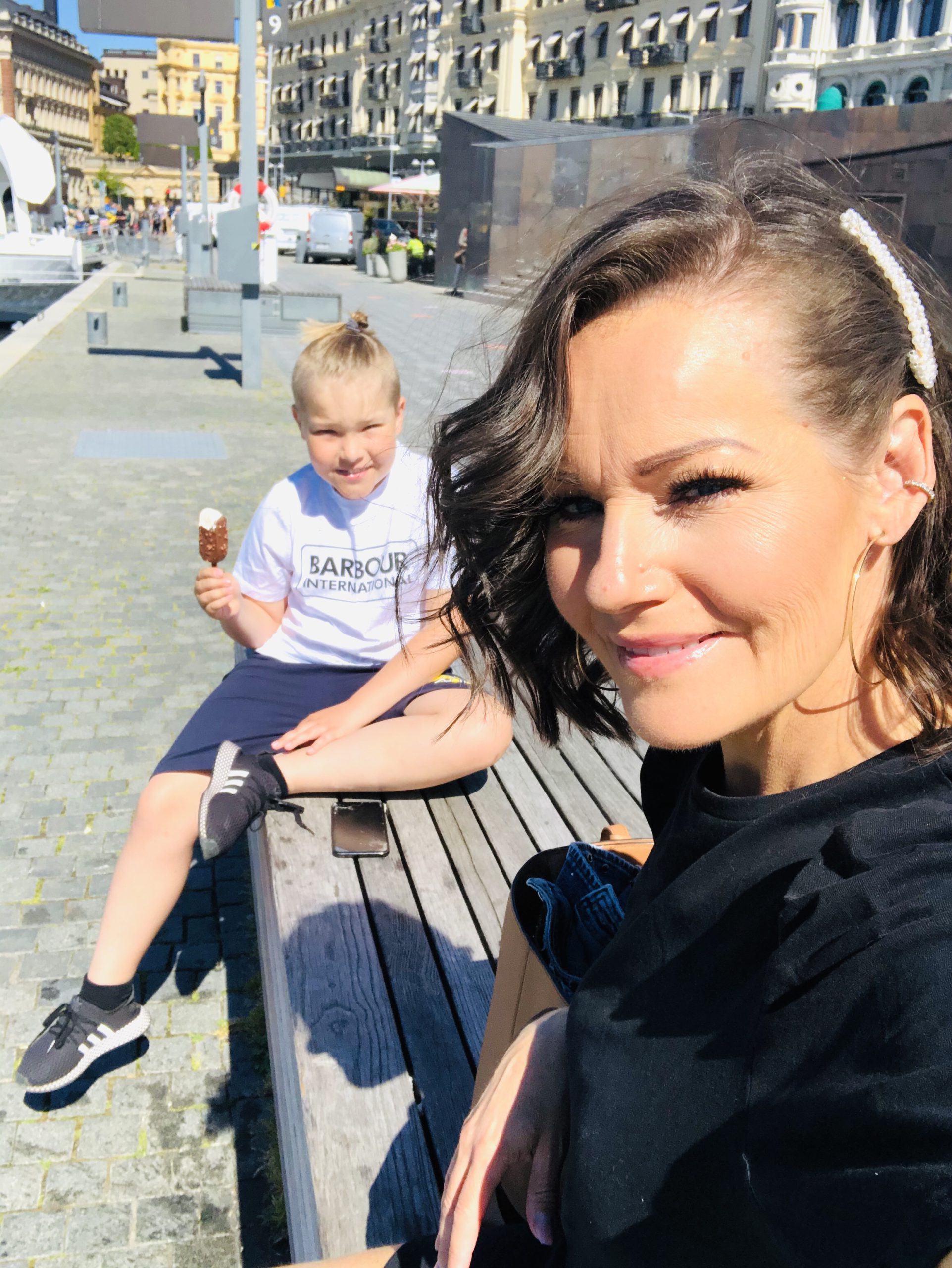 Vi satte oss utanför Grand Hotel och kikade på båtarna och hade det hur mysigt som helst. Jag är så glad för att jag blivit bättre på att leva i nuet. Att verkligen vara där vi är just då. Igår när vi satt just här så log jag inombords för att jag fick vara så lycklig just där och då. En fantastisk känsla som spred sig i hela mitt bröst. Kanske tycker du att jag låter töntig eller överdriven men jag lovar att livet blir bättre när man tillåter sig att vara bara jättelycklig såna där korta stunder. Min ångestproblematik och mitt katastroftänk har mycket handlat om att jag inte tillåtit mig att vara lycklig och glad. Då har jag varit rädd för att något kommer hända, ja om jag vågar vara lycklig. Låter helt sjukt, jag vet, men det är som en tvångstanke som inte vill lämna hjärnan. Som att det är bättre att vara beredd på hemska saker än att inte vara det. Och sitter jag här nu och är lycklig så kanske något hemskt kommer hända. Som jag sa, helt sjukt.