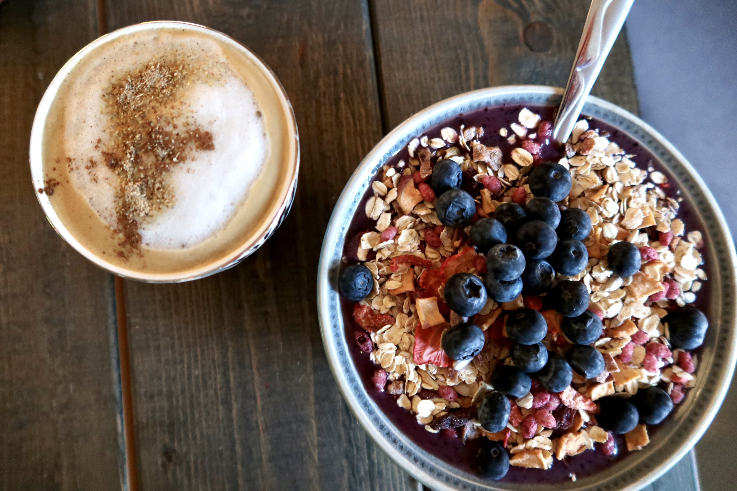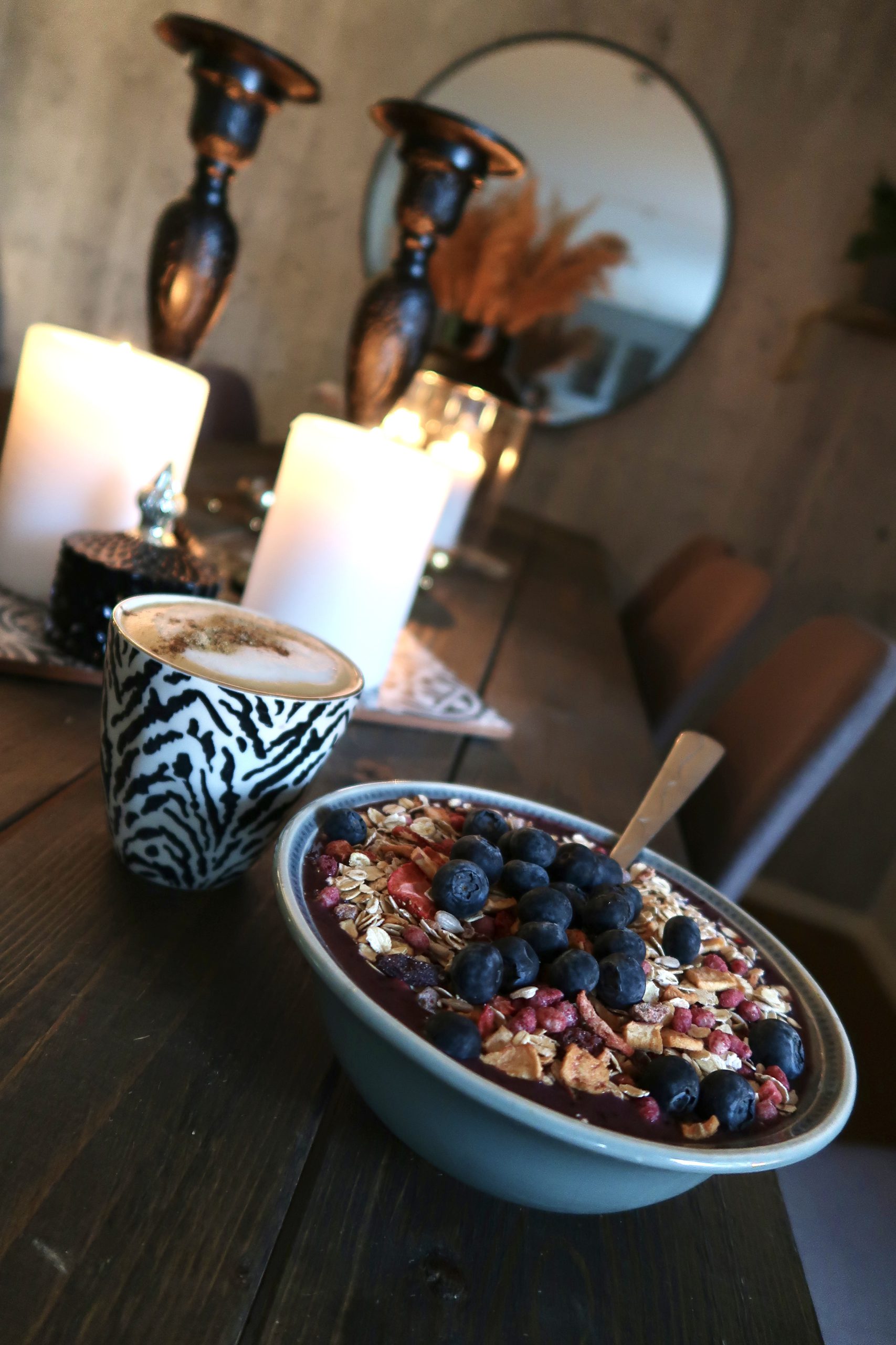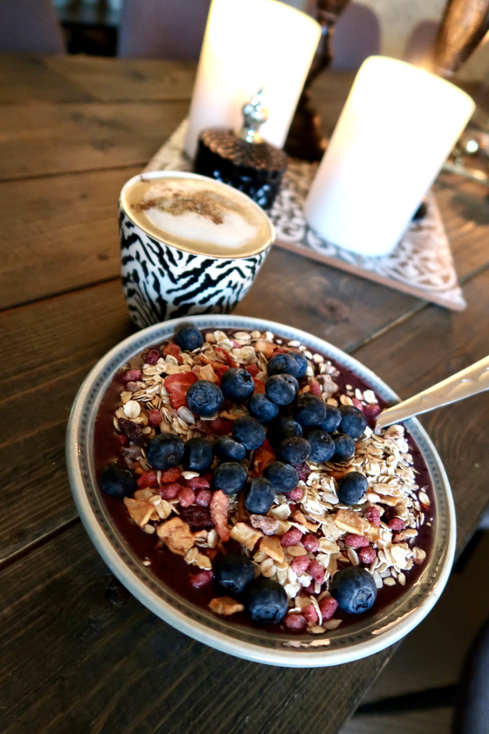 Efter promenaden på en timma så åt jag frukost när jag kom hem. Hittade en ny müsli på Lidl som jag bara var tvungen att testa, den var god! Nu ska jag in i rutinerna igen med mycket bättre mat. ”Yoghurten” gör jag själv. 2 bananer, 1,5 dl frysta blåbär (ej odlade) och kanske en 1,5 dl vatten. Häll i en skål och sen flingor eller müsli på och så toppar du med färska bär, sviiiiingott.