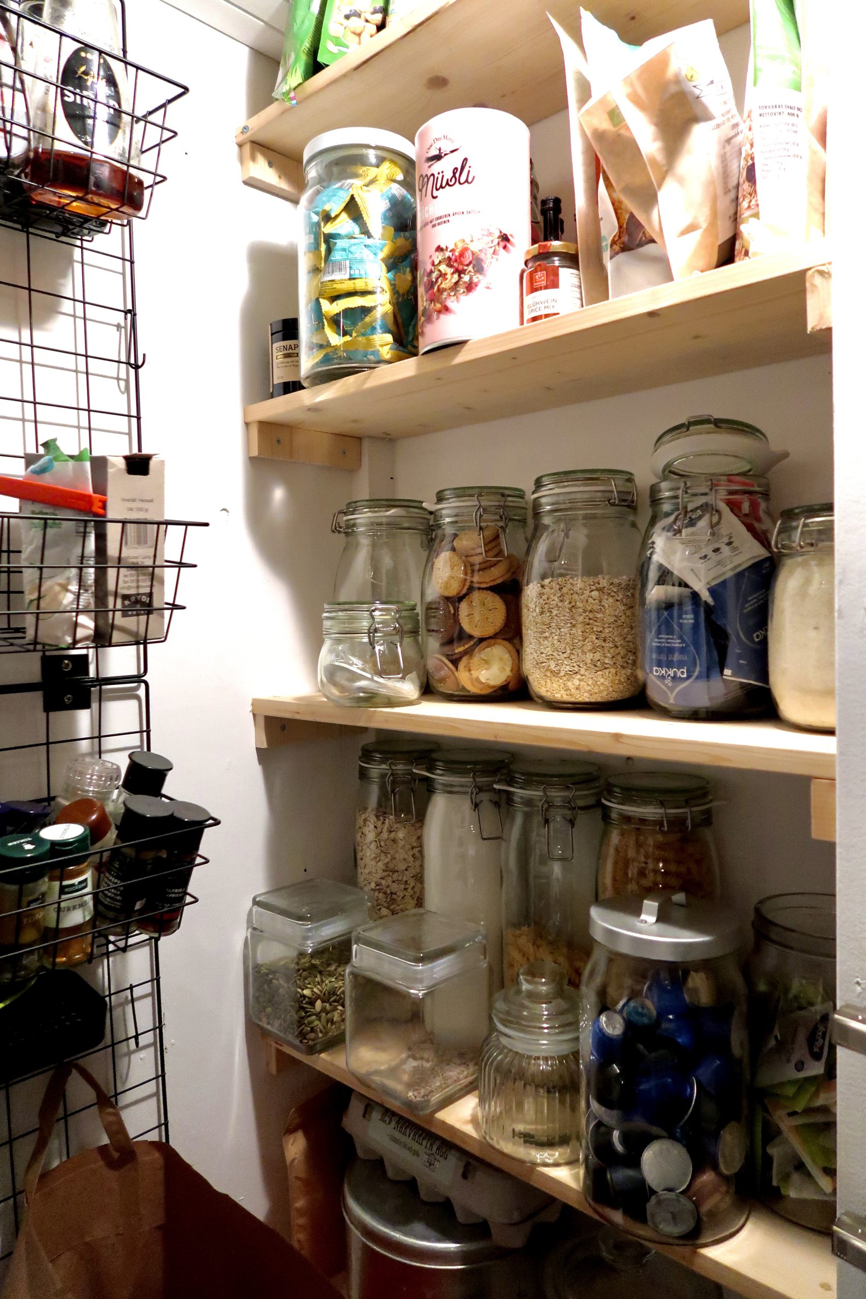 Skafferiet! Fortfarande lite saker att fixa men åh vad jag älskar detta lilla utrymme! Jag är en sån som älskar skafferivaror. Skulle kunna gå och kika i folks skafferiskåp bara för att se vad som har i det. Haha….