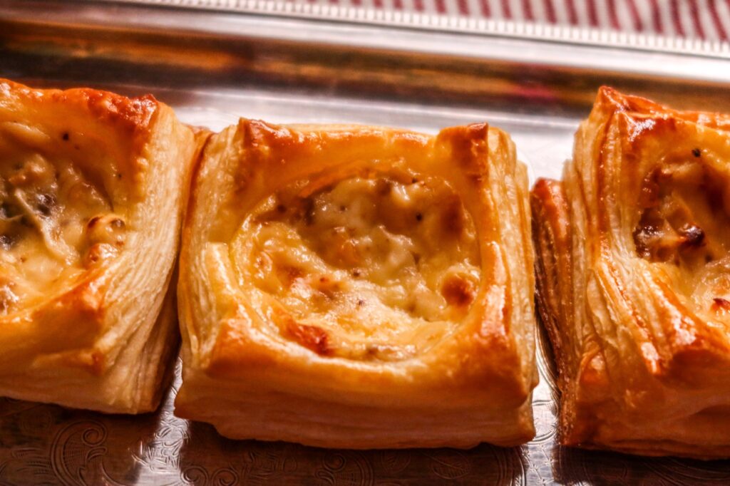 Gratinerade smördegssnittar! Något att njuta av till helgen kanske? Dessa åt vi på andra advent och de var så goda så hälften hade varit nog. Gratinerade smördegssnittar med den här fantastiska röran alltså, den är såååå god! Jag blandade färskost, lagrad riven prästost, fikonmarmelad, salt & peppar och alltså den röran som gratinerades i smördegssnittarna. Wooooow! Så vaninnigt gott, du måste testa dessa frasiga gratinerade härligheter till smördegssnittar.