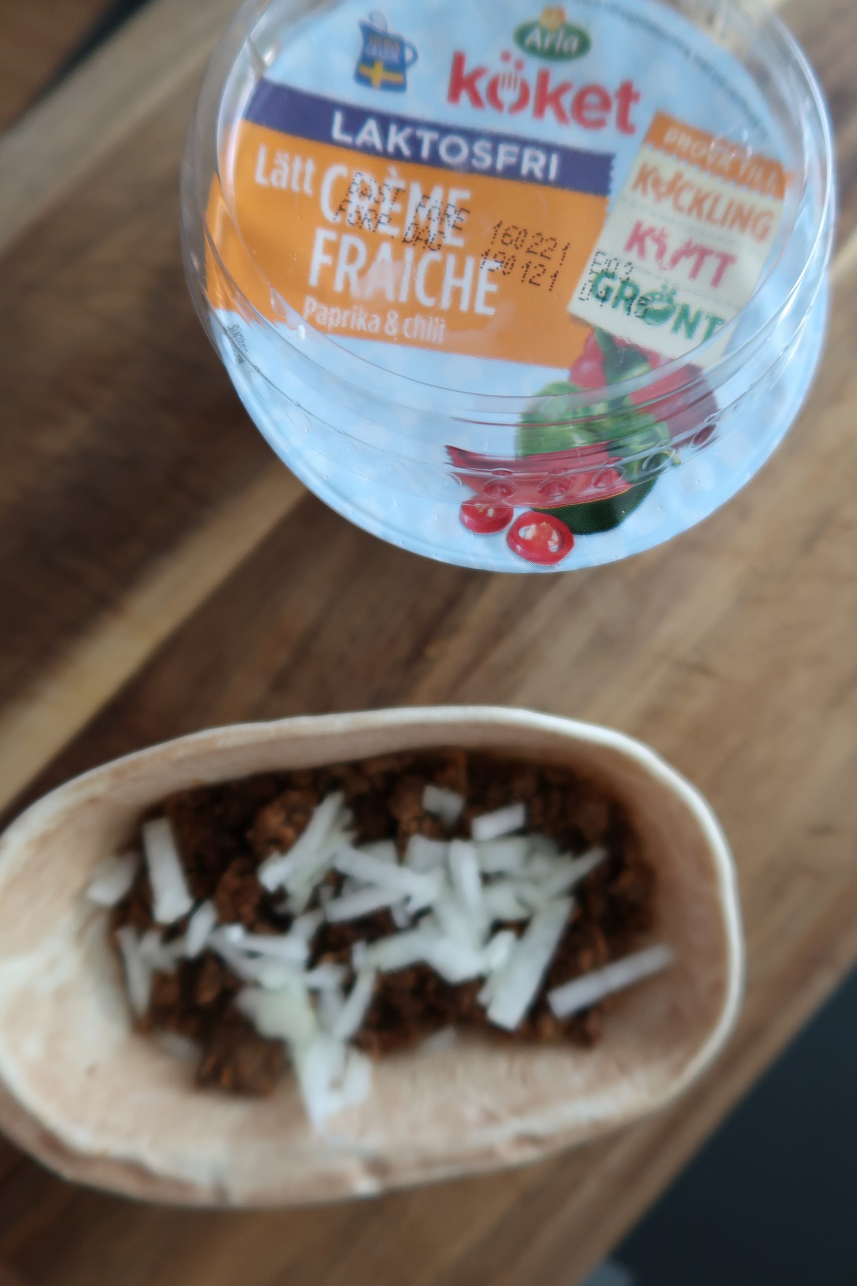 250 g tacoköttfärs (gör efter anvisningarna på Tacokryddepåsen, du kan också använda bara köttfärs utan tacokryddan)