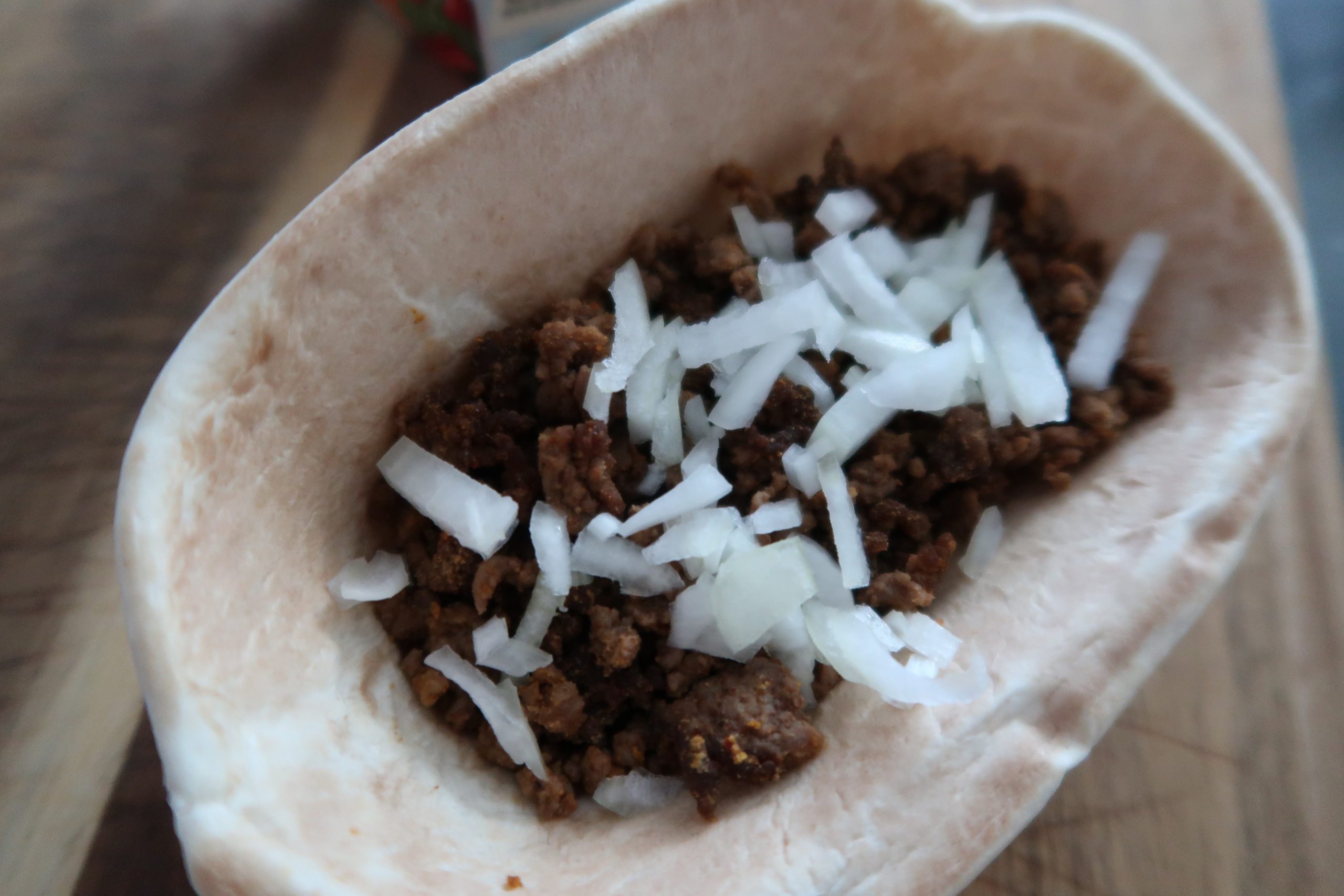 1) Har du inte färdig tacoköttfärs och steker du köttfärs enligt anvisningarna på Tacokryddans påse.