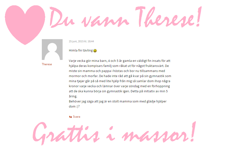 Grattis Therese! Det ni gör är alldeles fantastiskt! ♥♥♥