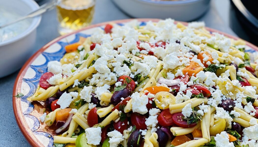 Grekisk pastasallad med grillad kyckling
