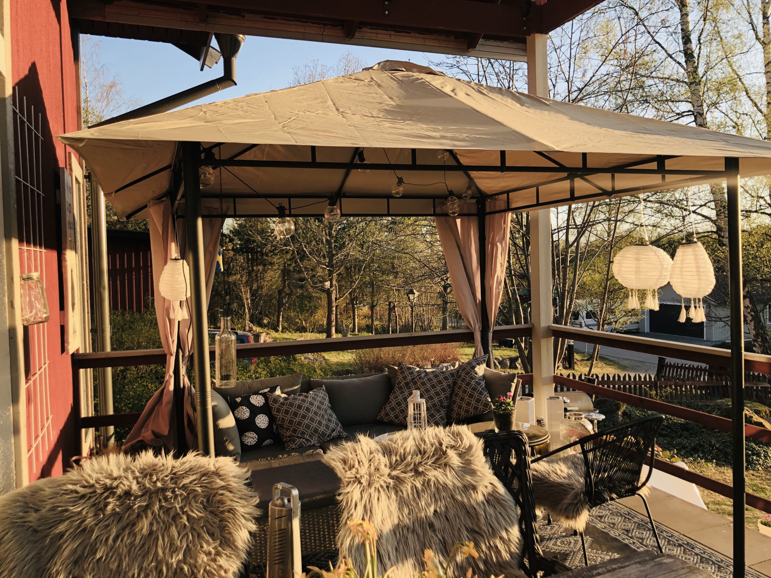 Åh,ser supermysigt ut! Men du, va fint du har fått till det på altanen, heeelt i min smak 😍 undrar vart du fått tag på den ljusslinga som sitter i ”taket” i paviljongen? Kram❤