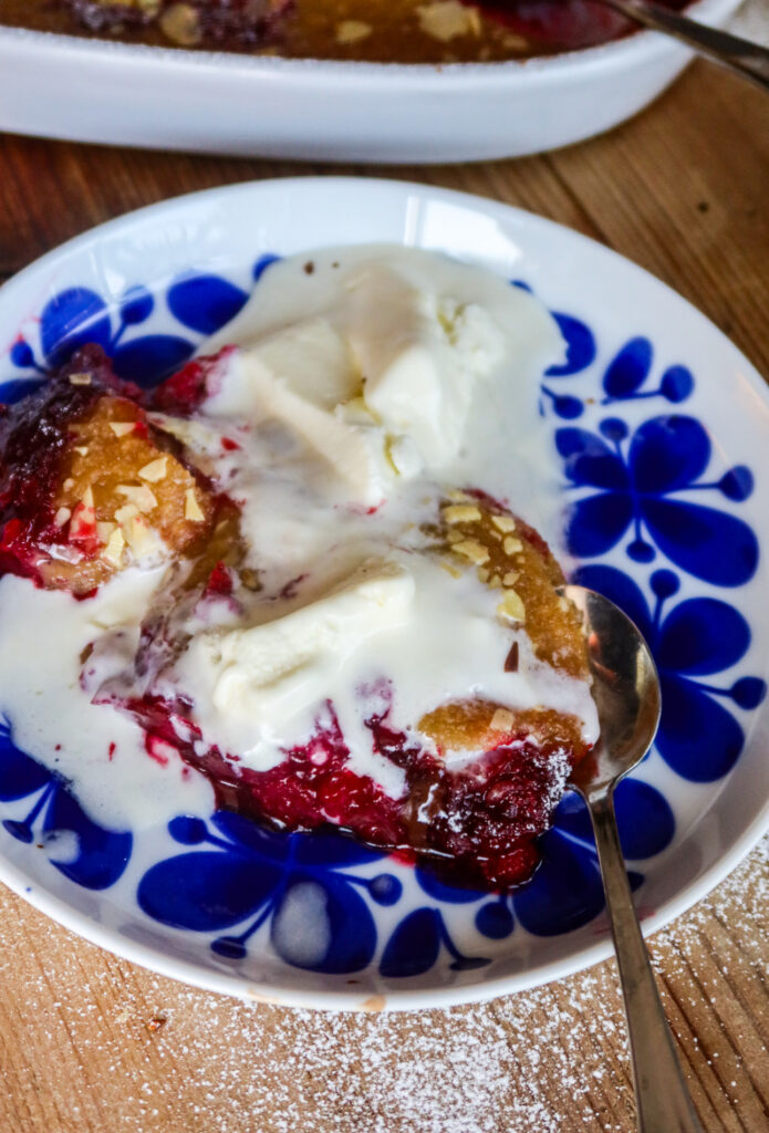 Den här hallonkakepajen med mandelmassa blev som sagt magiskt god! På något sätt så visste jag att den skulle bli succé, det kan inte bli annat med smör, mandelmassa och hallon. 😅 Smeten du brer ut på hallonen är bara så magiskt god, lite seg och frasig samtidigt som den smakar himmelskt gott!