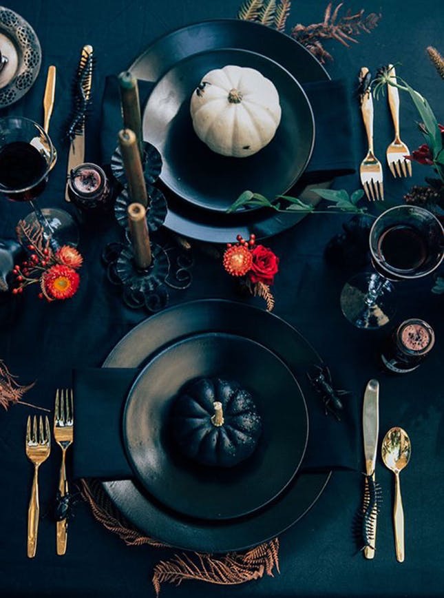 Med pumpaljus, riktiga pumpor och snygga svarta ljusstakar och ljushållare kommer man långt med Halloween dukningen.