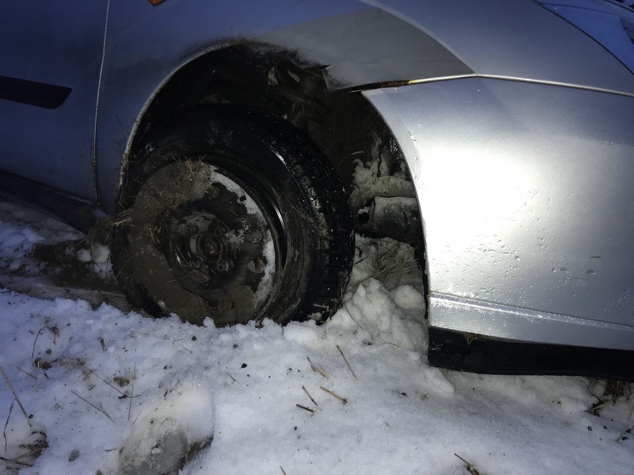 Bilen är totalkvaddad under. Hjulhuset och axeln är helt paj, det är bara att skrota bilen. ☹️
