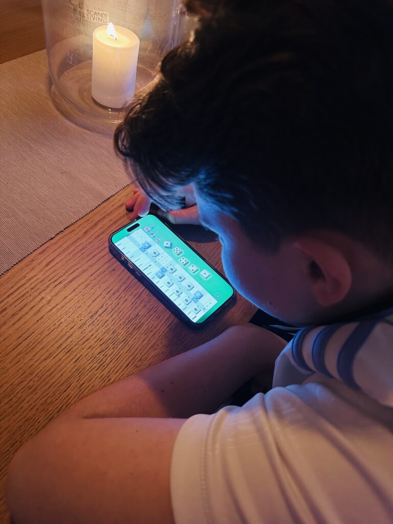 I lördags åt vi lunch hemma vid matbordet och sen skulle en YATZYmatch avgöras. Haha, det gick galet bra för den här mamman. Även om mitt namn ser lite konstigt ut så vann jag. Fick 5 stycken 6:or 2 ggr i rad. Var nämligen riktigt illa ute innan det men serru det löste sig.