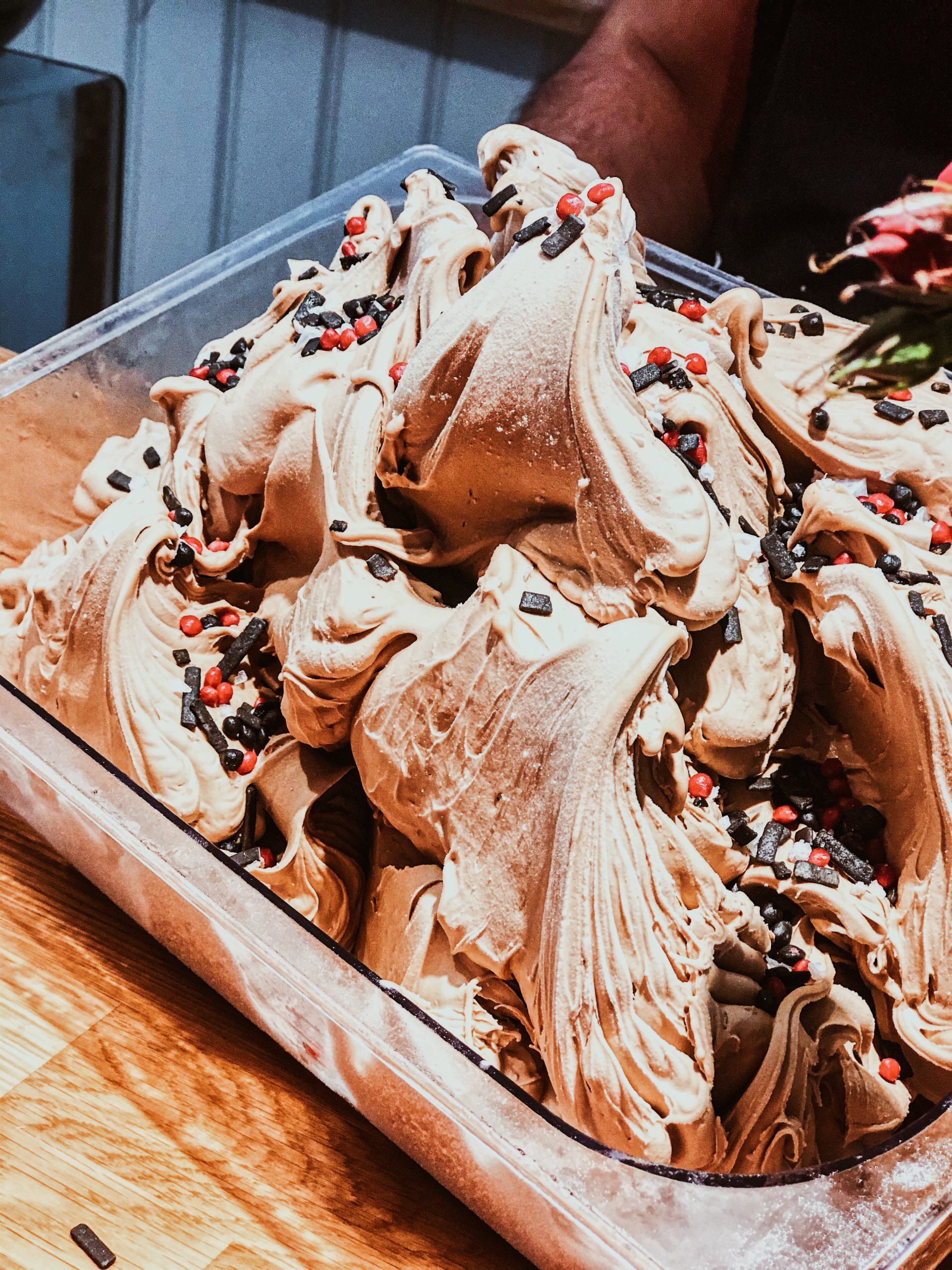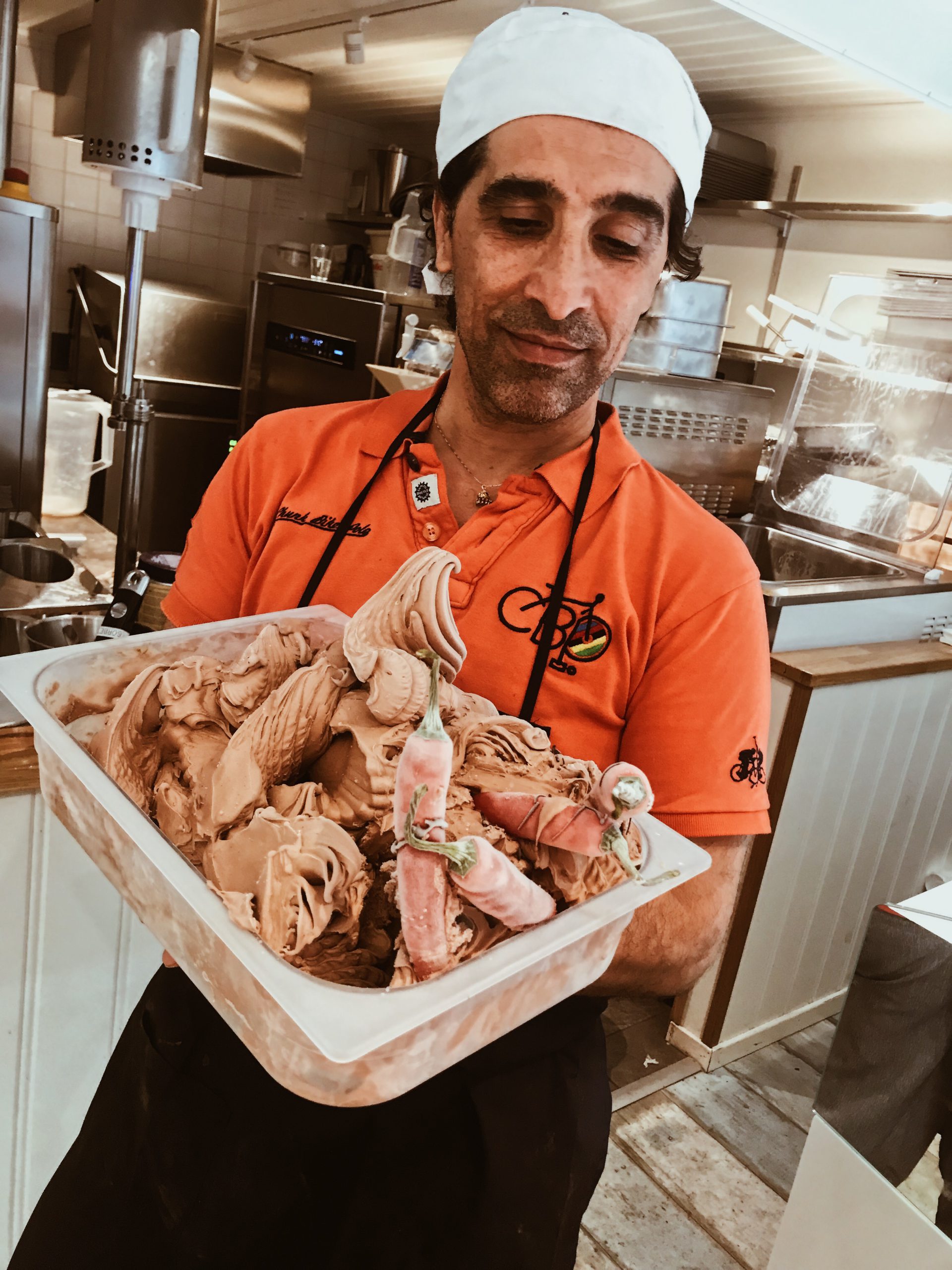 Jag själv fick en visning i köket på hur glassen tillverkades. Fantastiskt! Loren Jin’s Gelato & wafflehouse hette det.