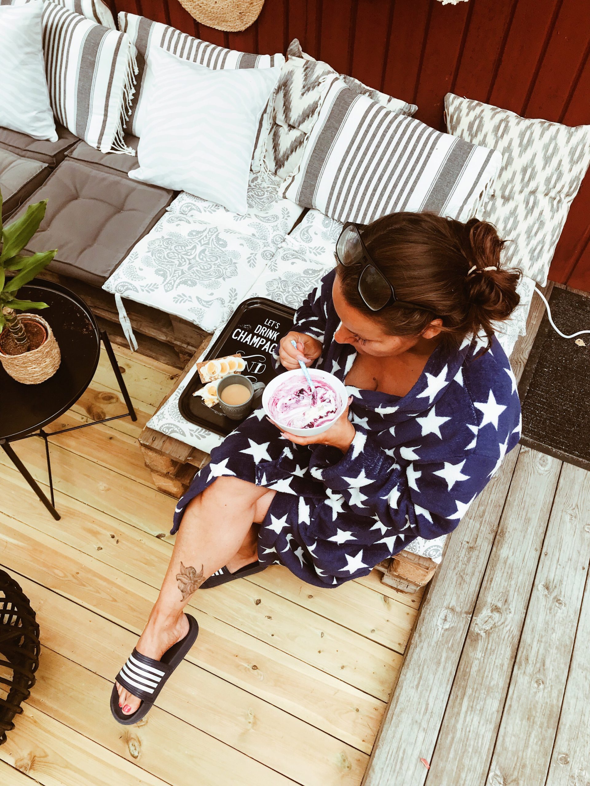 Alltså hörni…. snacka om att man ändrar rutinerna nu. Frukost äter man vid lunchtid och lunch vid middagstid. Man ”glömmer” typ middagen. Tack och lov för yoghurt och smörgås.