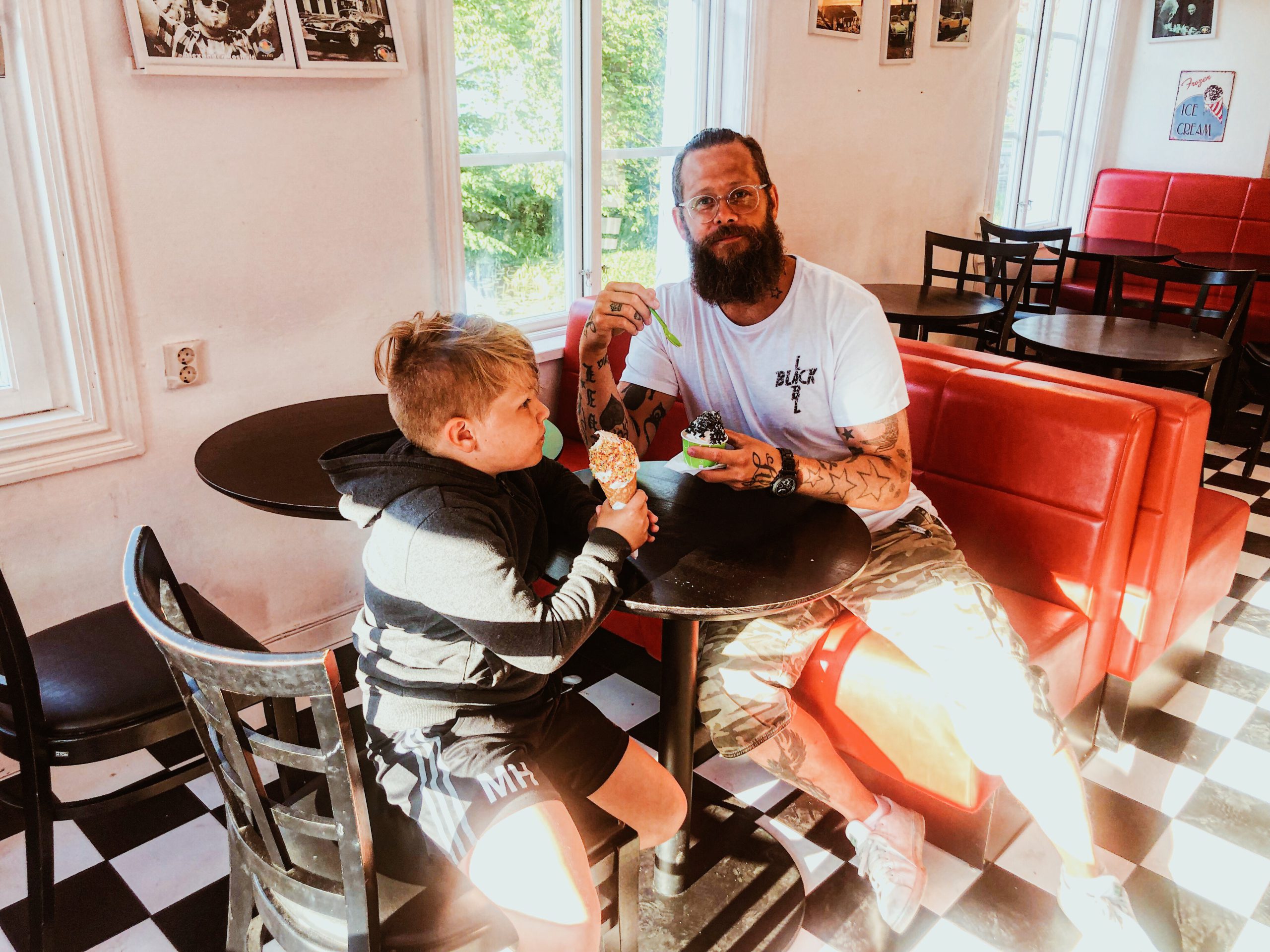 Efter maten blev det kaffe och glassjakt. Tyvärr så var de flesta ställena stängda i Norrtälje. Hittade ett hak till slut som det blev en glasspaus på, dock inget kaffe, han hade stängt av maskinen redan.