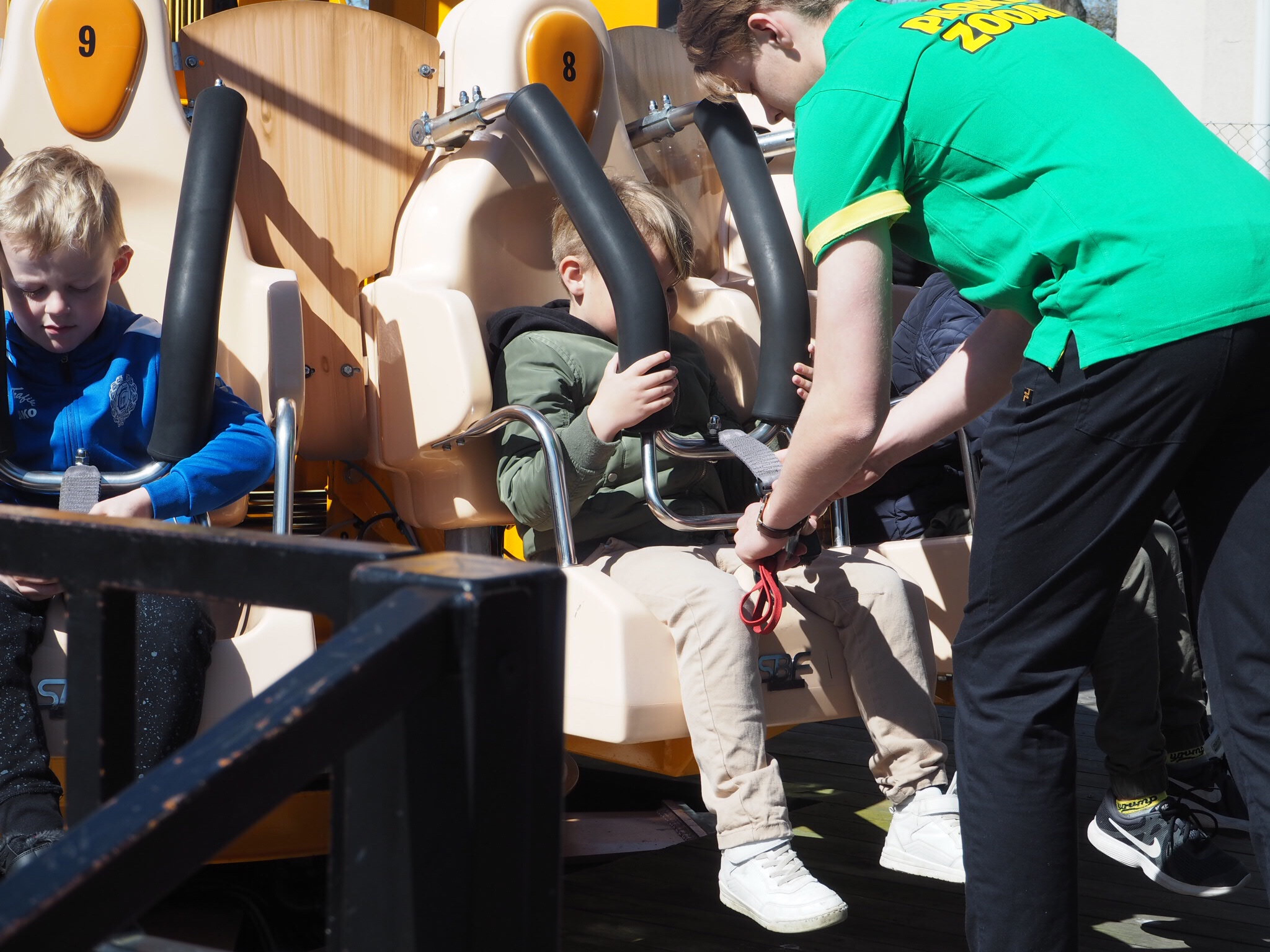 Oj vad nervös Milo var för upplyftet eller vad det heter. Lite som fritt fall men den åker upp och ned en massa gånger. Dock så behövdes det bara en gång, sen var inbiten och ville åka hela tiden.
