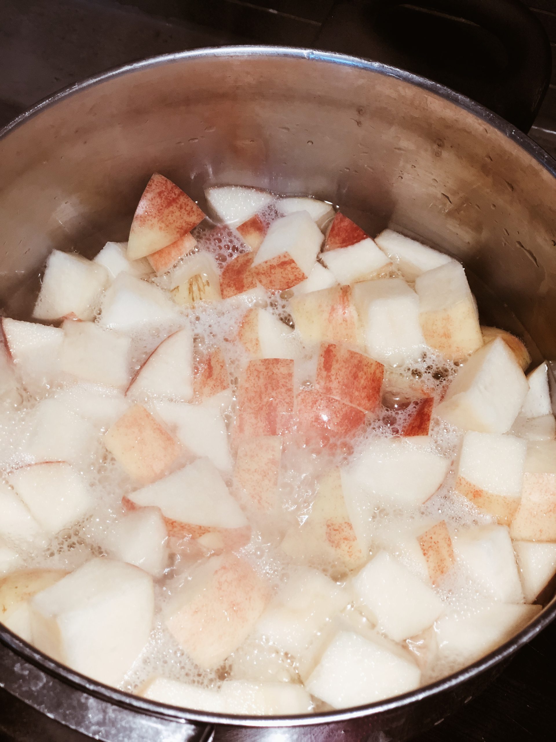 Jag har kokat nyttig äppelmos här på morgonen. Ska ge er recept på den här senare. Det är inget tillsatt socker i men blev söt och god ändå. Har ätit den på gröt nu på morgonen, mums!