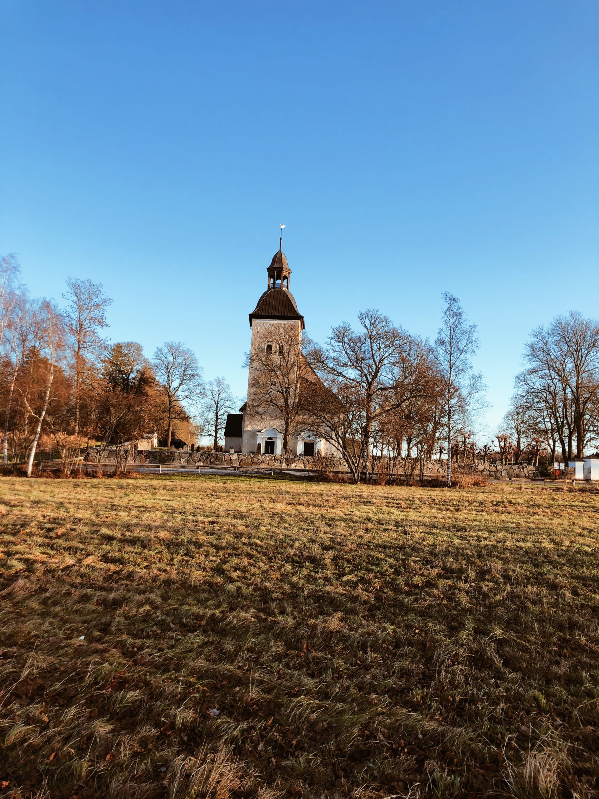 Vädret var så härligt fast det blåste lite. Jag var ute och gick med mamma och pappa, vi gick ute på landet där mamma o pappa bor. Vi passerade kyrkan där mina stora barn är döpta, tycker den är så fin!