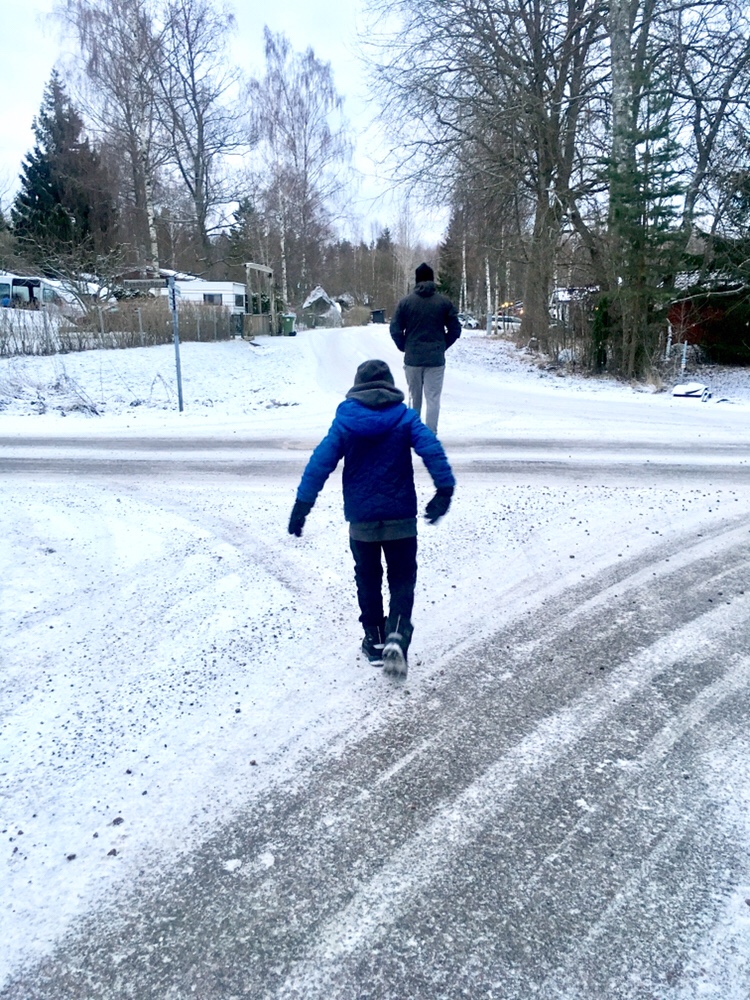 I morse var lilla familjen ute på promenad som sagt. Vi var ner till isen och kikade gick på den lite.