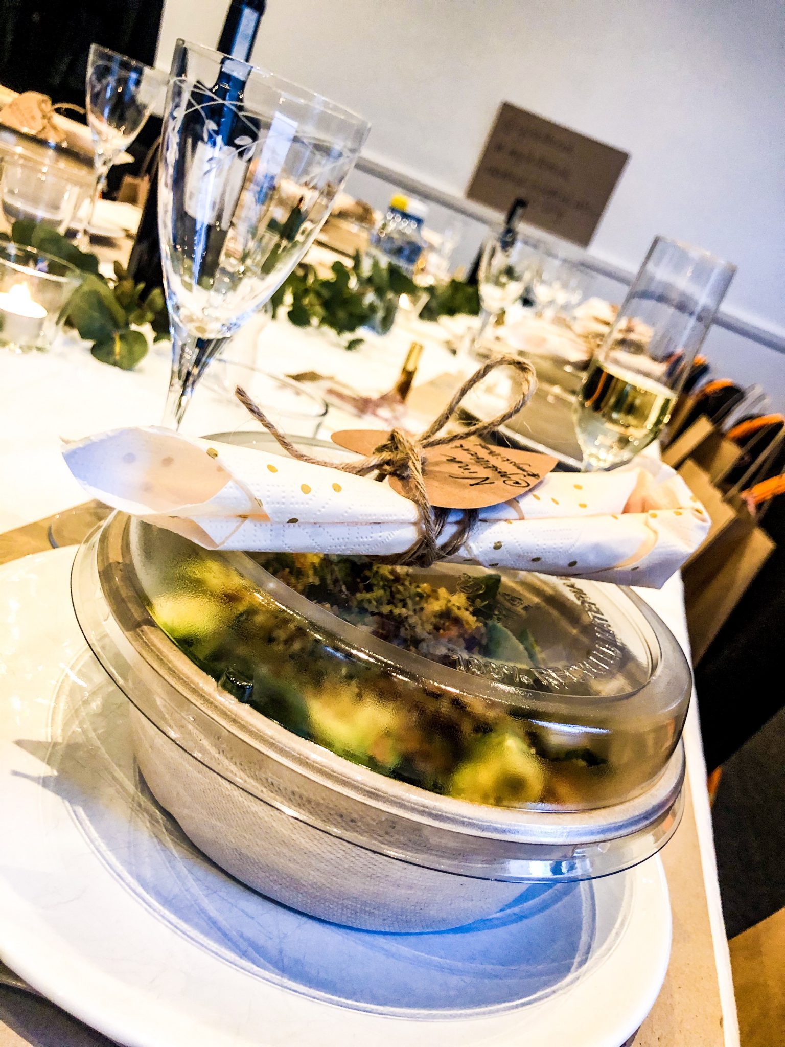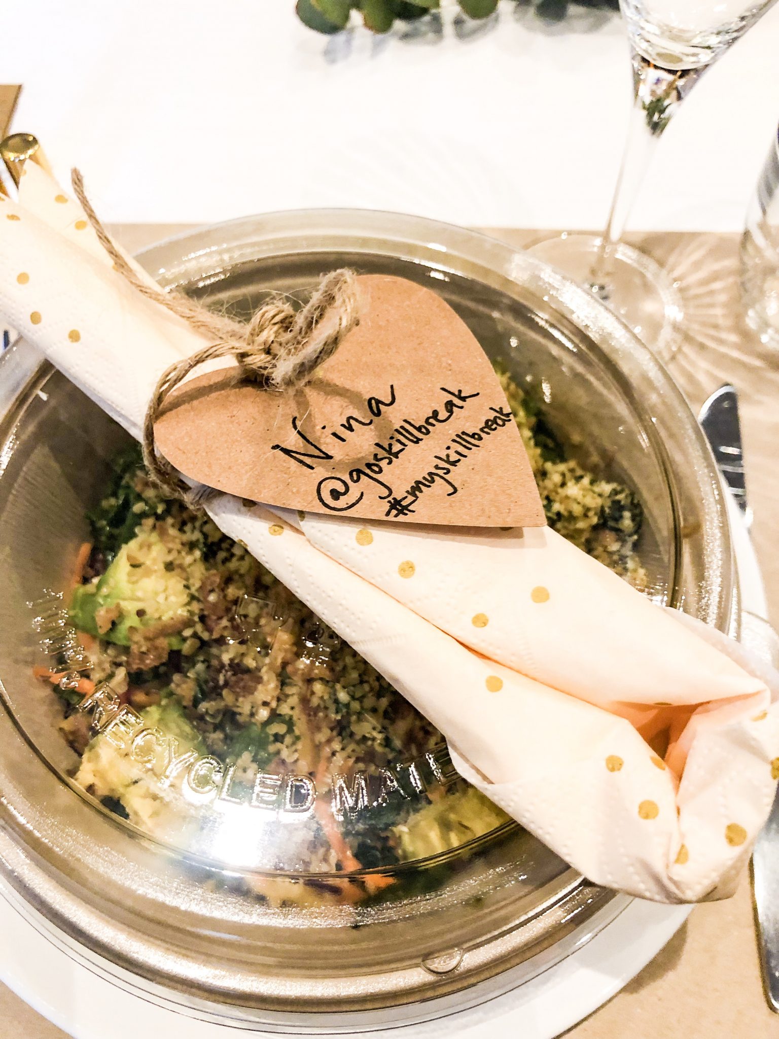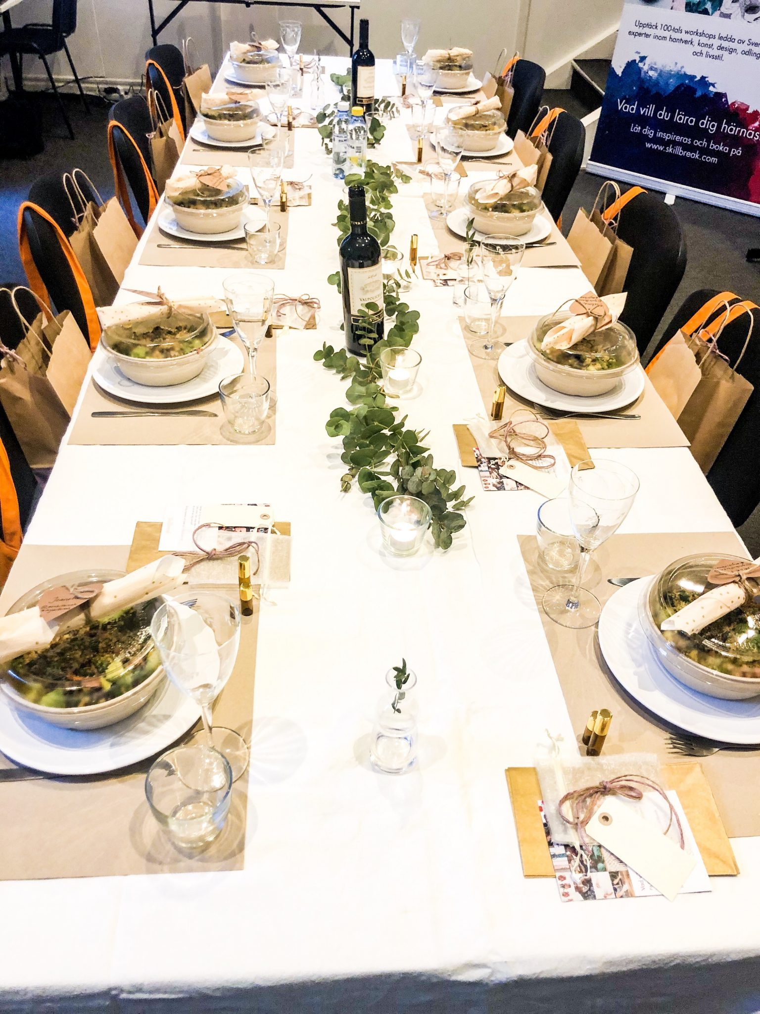 Ett fantastiskt uppdukat bord som väntade. Salladen var helt vegansk och så magiskt god! Kale & Crave heter företaget som levererade maten.