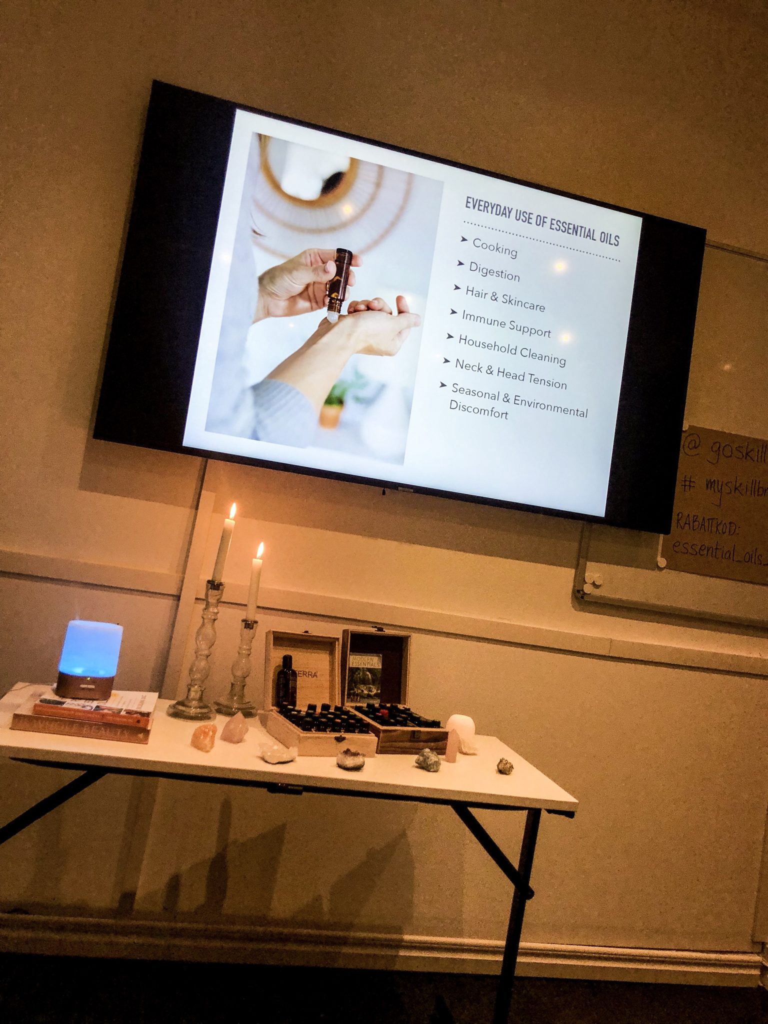 Vi fick en sååå intressant genomgång av eteriska oljor. Jag är ju helt såld på eteriska oljor och det ska nog bli nästa steg i mitt ”må-bra” liv. Eteriska oljor gör nämligen underverk för kropp och själ. Hon som föreläste äter t ex aldrig värktabletter utan använder sig helt och hållet av eteriska oljor istället. Har massor att berätta om det här känner jag. Får bli längre fram!