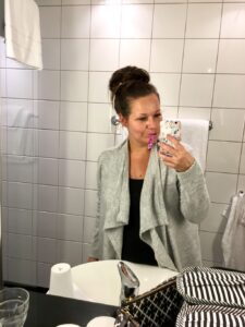 Här står jag och borstar tänderna. Älskar hotell! Vi lyckades få tag på en sån bra deal som man kan få ibland så det blev ett exekutive room. Ja vad det nu betyder. Det är lite större och har stora fönster kanske? Det här ligger på Sveavägen och perfekt nära stan. Bodde här med kompis Maria förut när vi gick på ladies night. Googlade och hittade inlägget från då.