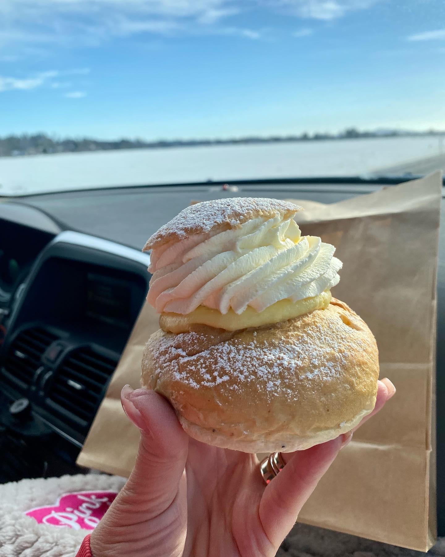 På vägen hem igår så frågade jag efter mysiga ställen på min Instagram. Fick massor med tips om detta bageri, Vansbro konditori. Blev bara tvungen att stanna till där efter vi ätit lunch. Blev en munk till Milo, mazarin till Tony och själv valde jag den här vaniljsemlan. Hur det gick att äta utan sked i bilen? Jodå, med grädde i hela ansiktet sänkte jag den jäkeln på två röda. Haha! Så gott!