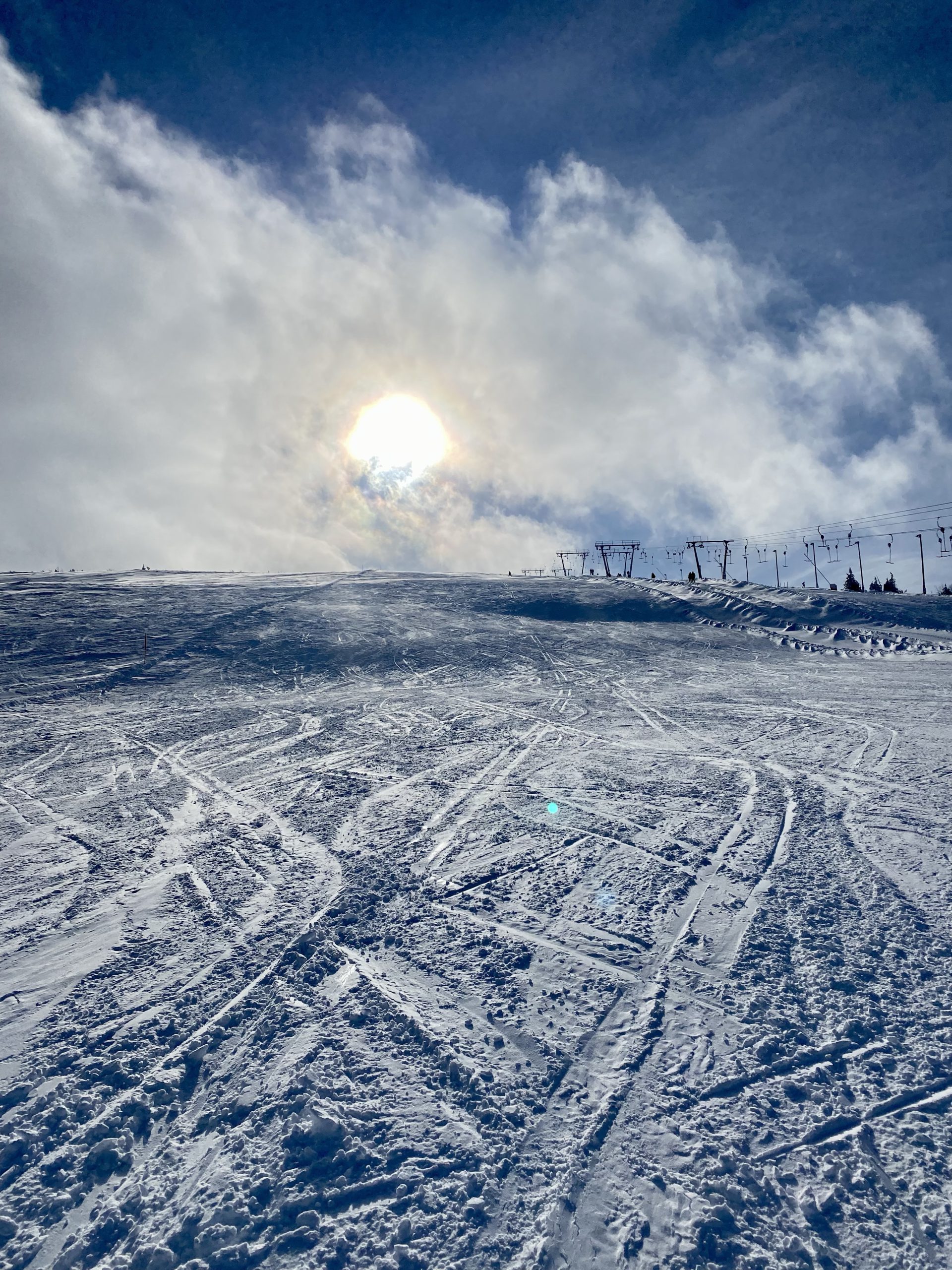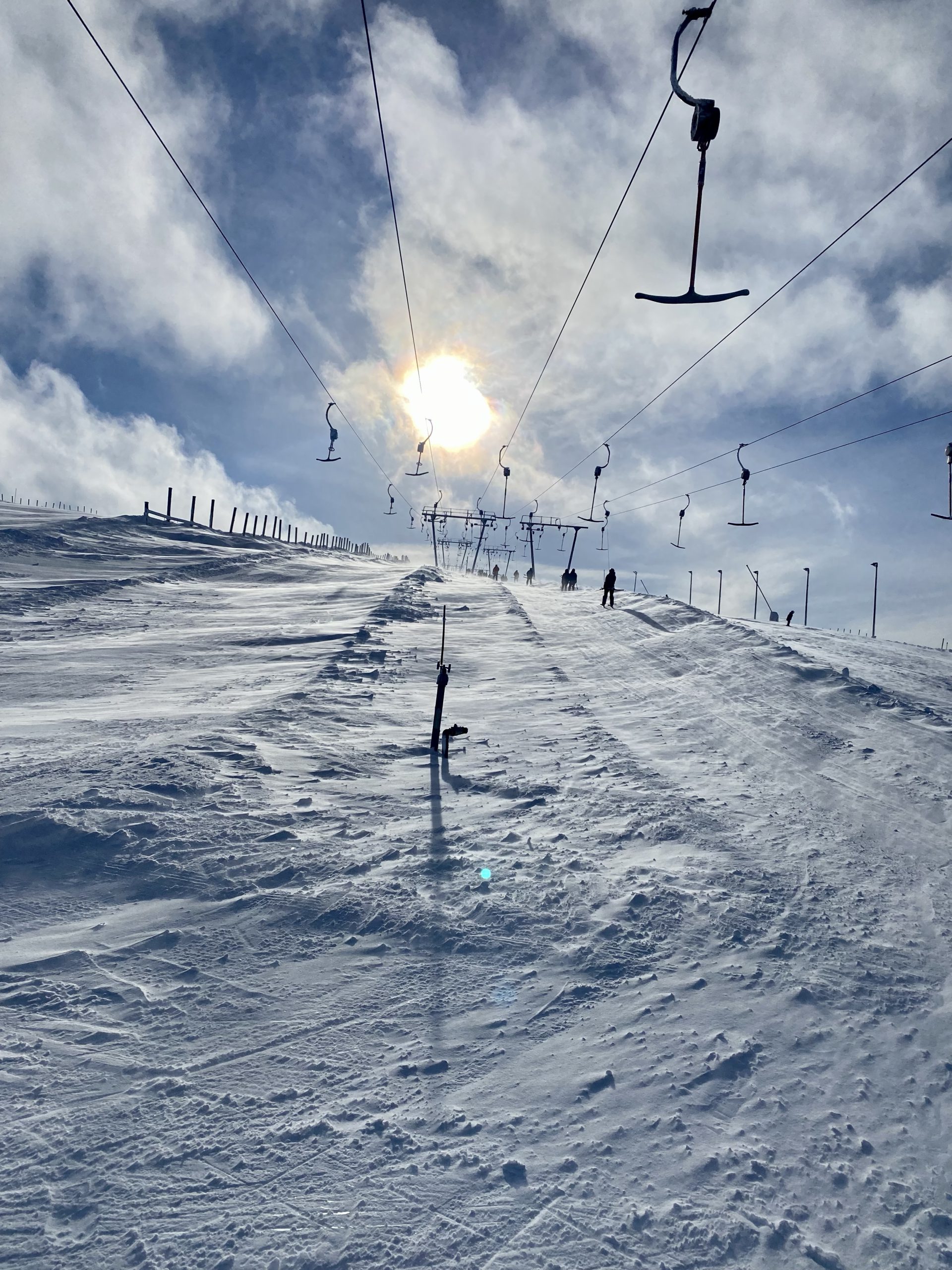 Skidåkningen har varit top notch på alla sätt. Både utför och på längden. Man är verkligen bortskämd med mängder av snö när man är där uppe. Här var vi på väg i transportliften till Högfjället.