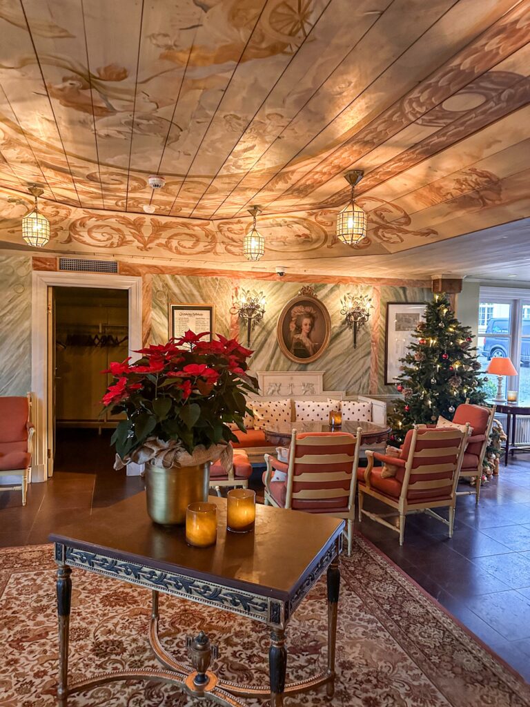 Innan vi tackade för oss så fotade jag ingången till värdshuset. Så himla fint uppe i taket va? Är alldeles svag för konst i taket, skulle jag få skulle tapetsera alla tak hemma med. 😀