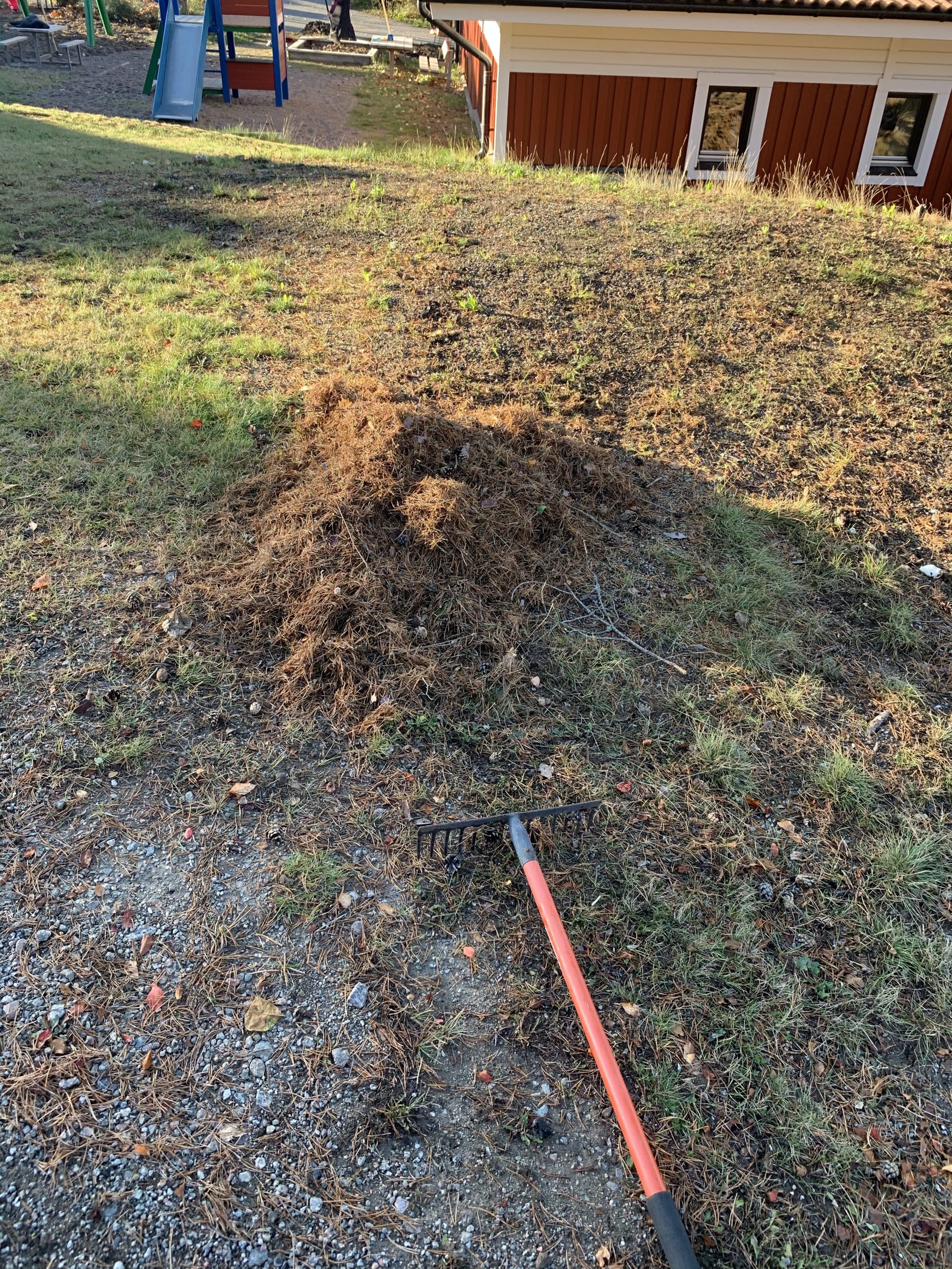 I morse var det gårdsstädning. Numera ingår vi ju i en samfällighet och då ska det städas på området på hösten och på våren. Jag fick kvista till Granngården tills dom öppnade för att köpa kratta och kvast, vi hade bara en stackars kratta så det behövdes fyllas på.